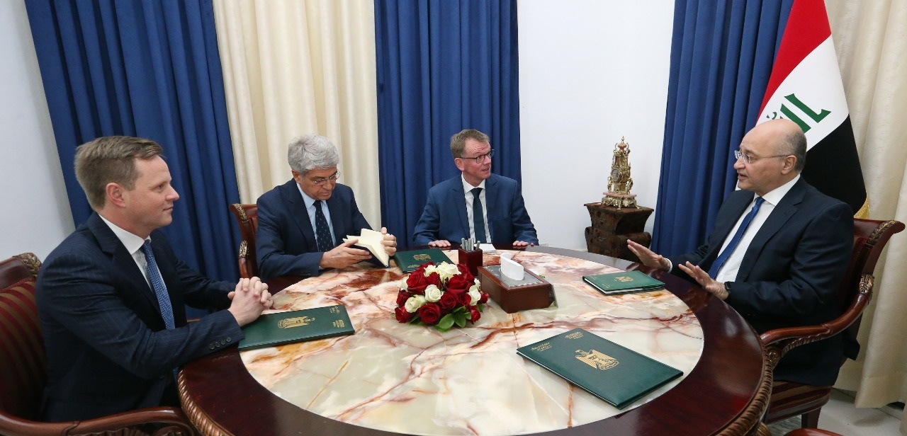 رئيس الجمهورية يستقبل سفراء بريطانيا والمانيا وفرنسا بقصر السلام في بغداد