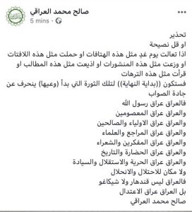 قراءة: صالح محمد العراقي يعلق على لافتات كتب عليها عبارات ضد المراجع والاحزاب والسياسيين