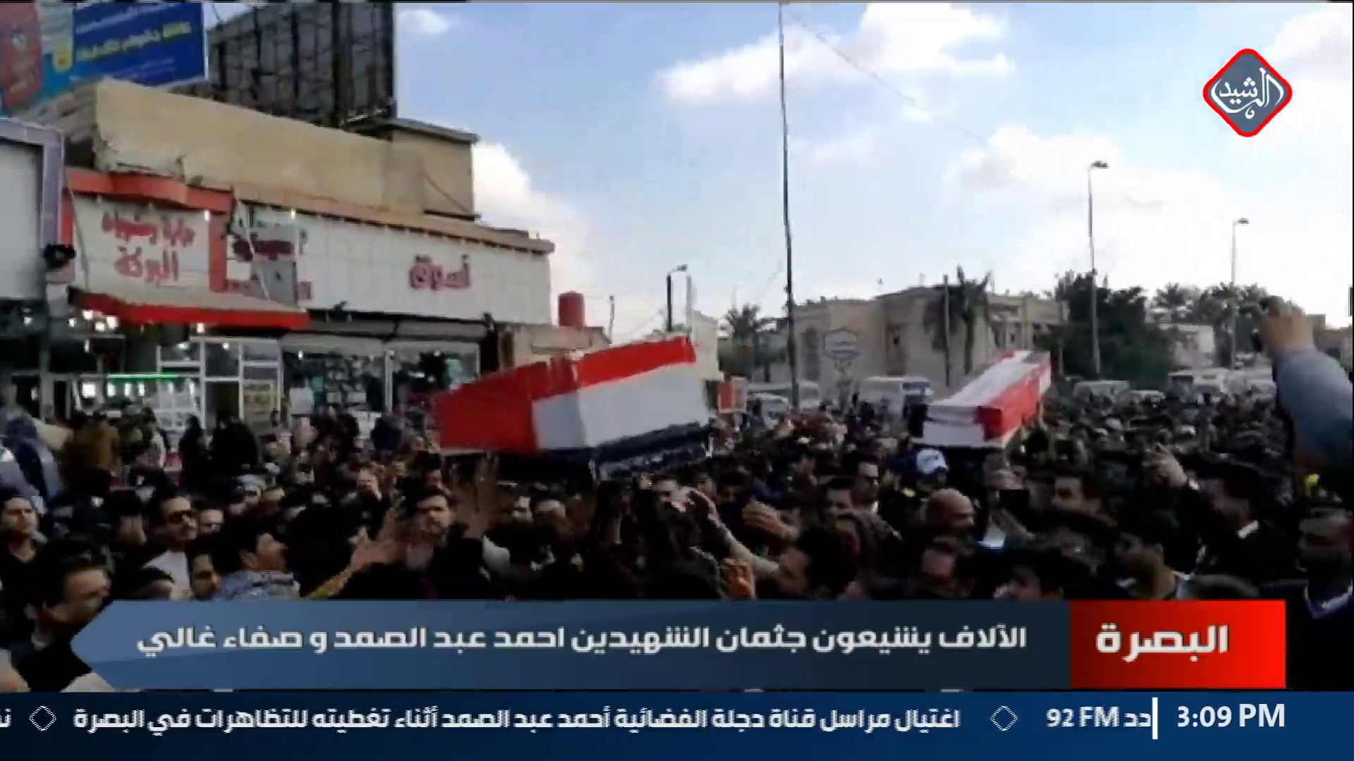 شيع الالاف من اهالي البصرة الشهيدين المراسل احمد عبد الصمد والمصور صفاء غالي, وشُــيع الشهيدان بمسيرة كبيرة انطلقت من منطقة الحكيمية باتجاه ساحة الاعتصام, وسط انتقاد شديد من قبل المشيعين لعمليات استهداف الاعلاميين والناشطين, فيما انتقدوا دور القوات الامنية في توفير الحماية اللازمة والحد من حصول عمليات الاغتيال.