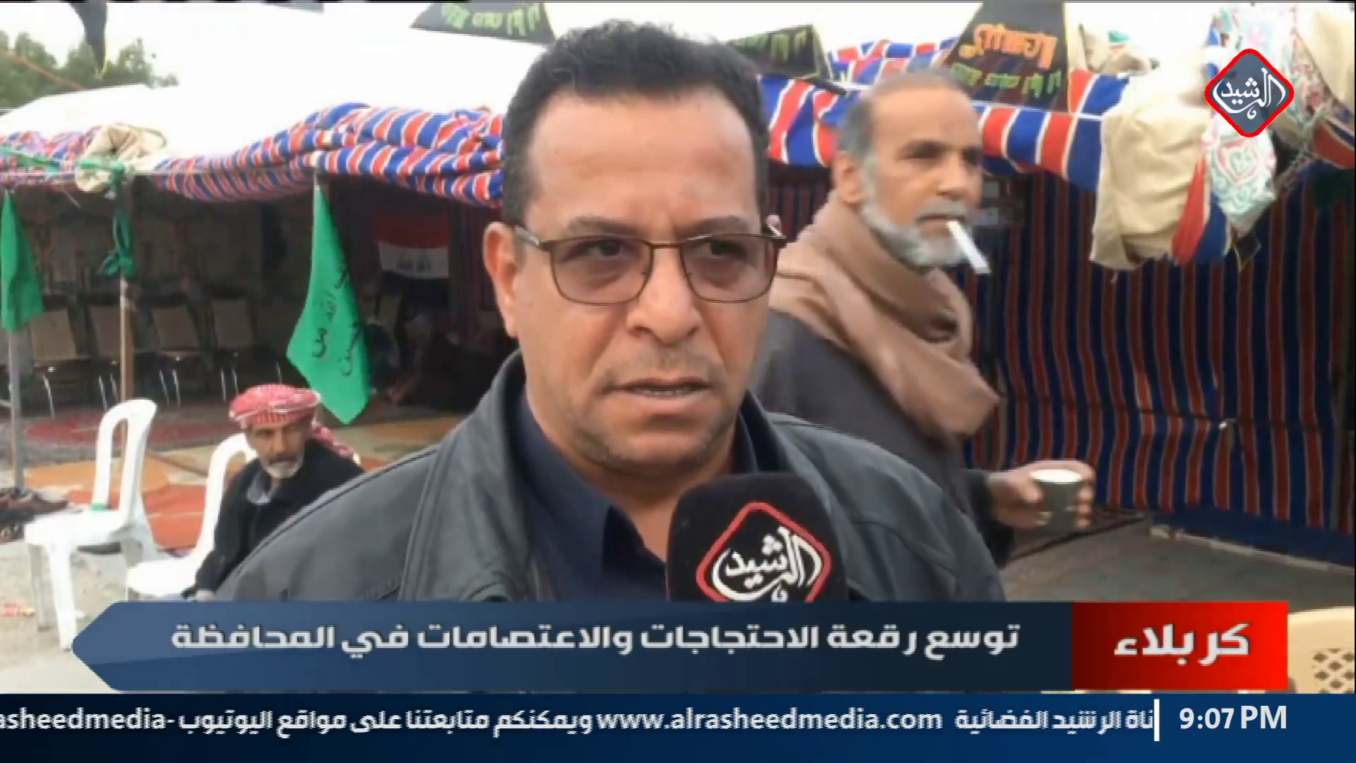 رقعة الاحتجاجات والاعتصامات تتسع في محافظة كربلاء لتشمل مناطق اخرى حيث باشر اهالي مناطق القزوينية والمخيم و السعدية باعتصام مفتوح مؤكدين اصرارهم على الاستمرار حتى تحقيق المطالب