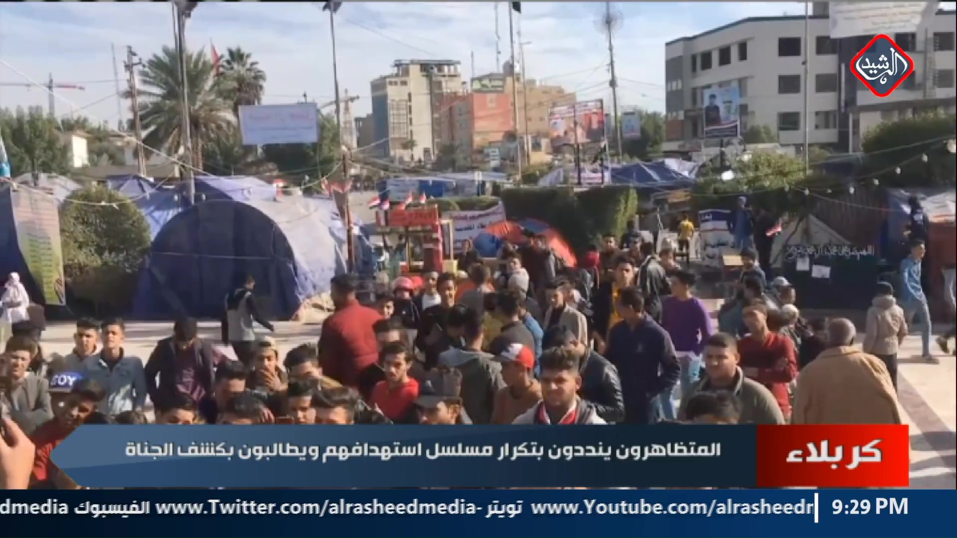 فيديو : المتظاهرون في كربلاء ينددون بتكرار مسلسل استهدافهم ويطالبون بكشف الجناة