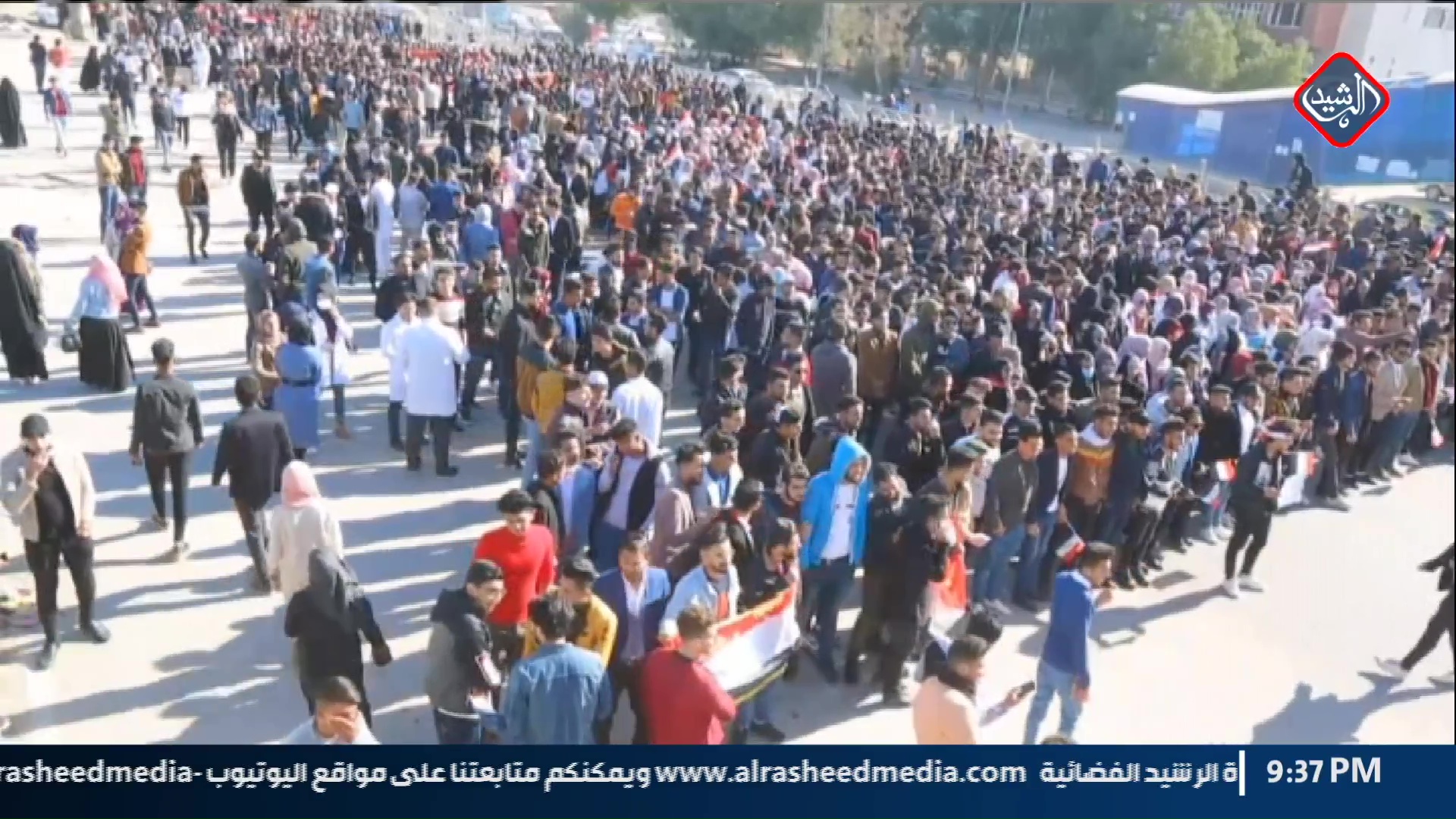 طلبة الجامعات في محافظة النجف نظموا مسيرة جديدة للتأكيد على الاستمرار بالاعتصام حتى تحقيق المطالب، رافضين قرار وزارة التعليم العالي باستنئناف الدوام.