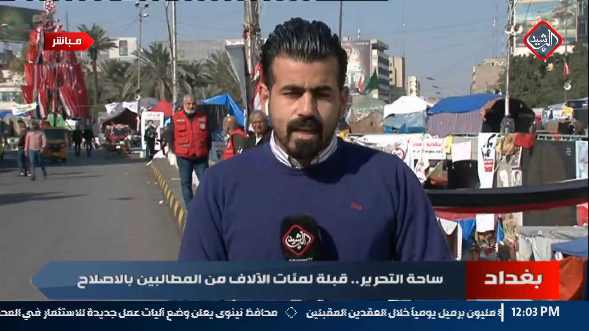 محلياتمن ساحة التحرير .. مراسل الرشيد جابر جمال قبل 6 سنوات 6 مشاهدات شارك قد يهمك أيضا أقتصاد العمل تعلن إطلاق راتب المعين المتفرغ لشهر كانون الأول قبل 17 دقيقة 6 مشاهدات عربي ودولي حماس: الاحتلال يعرقل الانتقال للمرحلة الثانية من اتفاق وقف إطلاق النار في غزة قبل 19 دقيقة 4 مشاهدات عربي ودولي وزير الخارجية السوري: العلاقات مع روسيا تدخل مرحلة جديدة قبل 45 دقيقة 5 مشاهدات أمن اعتقال 20 متهماً بالحرق العشوائي في النهروان جنوب شرق بغداد قبل ساعة واحدة 4 مشاهدات عربي ودولي وسائل إعلام تركية: طاقم طائرة رئيس الأركان الليبي يحمل الجنسية الفرنسية قبل ساعتين 6 مشاهدات