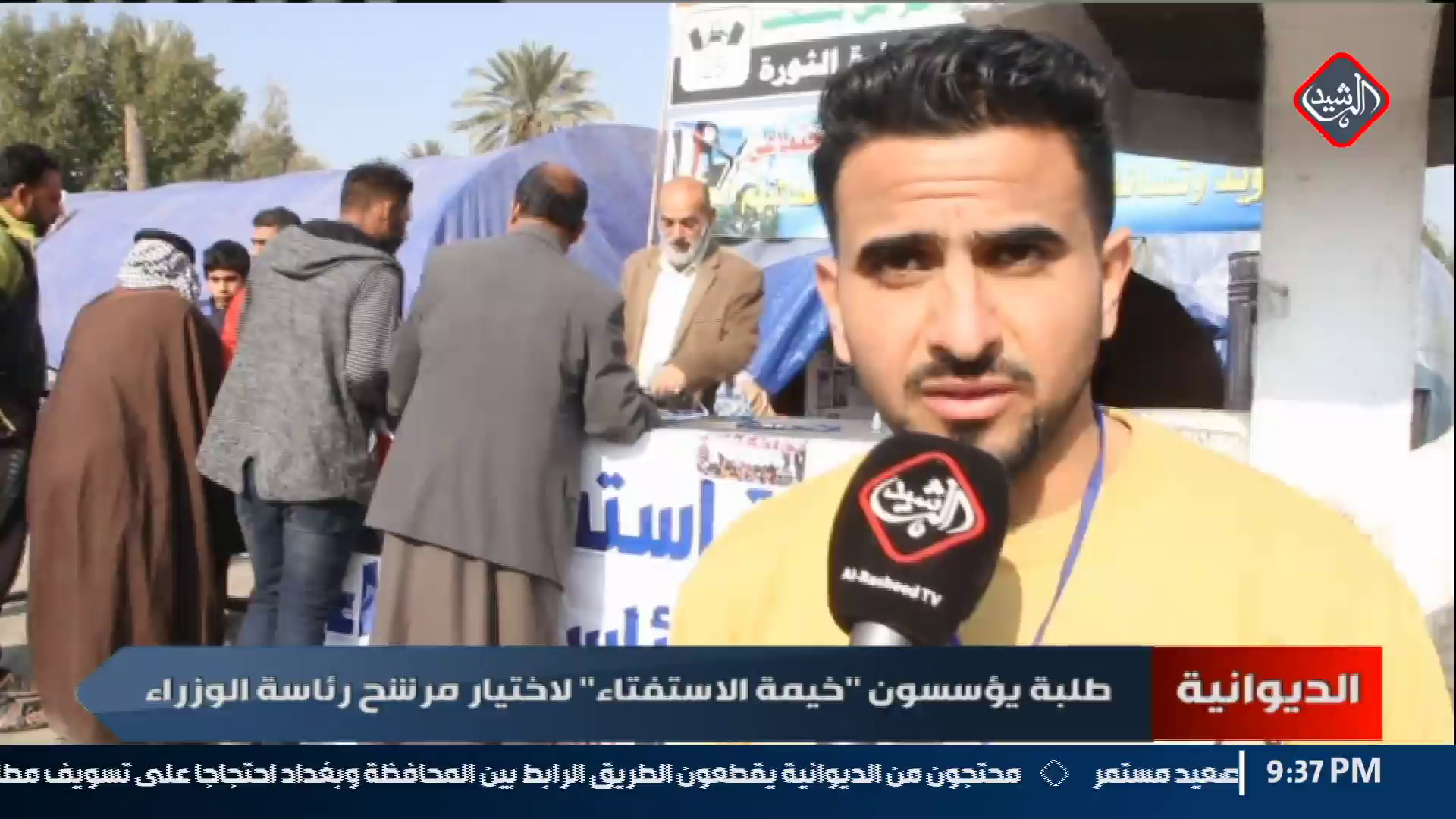 تقاريرطلبة يؤسسون “خيمة الاستفتاء” لاختيار مرشح رئاسة الوزراء قبل 6 سنوات 2 مشاهدات شارك قد يهمك أيضا سياسة القاضي فائق زيدان: استقلال القضاء هو حجر الزاوية في أي نظام ديمقراطي حقيقي قبل 44 دقيقة 5 مشاهدات سياسة رئيس مجلس القضاء: محكمة التمييز تمثل قمة الهرم القضائي ورمزاً للاستقرار القانوني في العراق قبل 45 دقيقة 5 مشاهدات أمن عمليات بغداد تعيد فتح طريق مغلق بمنطقة العرصات وسط العاصمة قبل ساعة واحدة 6 مشاهدات محليات الداخلية: إيقاف العمل في مديرية الأحوال المدنية والجوازات والإقامة حتى 4 كانون الثاني 2026 قبل ساعتين 12 مشاهدات أقتصاد ارتفاع أسعار صرف الدولار مقابل الدينار العراقي مع الاغلاق قبل 3 ساعات 15 مشاهدات