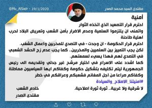 الاخبار العاجلةالصدر مغرداً: كفاكم ايها السياسيون مماطلة وكفاكم صراعاً من اجل المغانم قبل 6 سنوات 5 مشاهدات شارك قد يهمك أيضا عربي ودولي إيران تصادر ناقلة نفط تحمل 6 ملايين لتر في خليج عمان قبل 7 ساعات 17 مشاهدات عربي ودولي موسكو: مصادرة الأصول الروسية تطلق برنامج التدمير الذاتي للاتحاد الأوروبي قبل 7 ساعات 9 مشاهدات رياضة منتخب الإمارات يـتأهل لنصف نهائي كـأس العرب بعد تغلبه على الجزائر بركلات الترجيح قبل 7 ساعات 10 مشاهدات رياضة درجال معتذراً للجماهير عن الخروج من كأس العرب: اللاعبون سيعوضون ذلك في آذار المُقبل قبل 8 ساعات 9 مشاهدات رياضة إصابة يزن النعيمات بقطع في الرباط الصليبي قبل 8 ساعات 15 مشاهدات