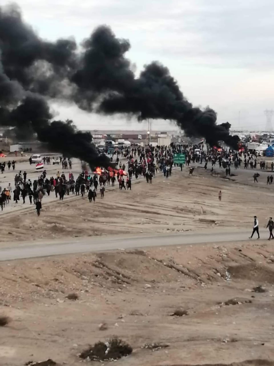 وتابعت، “واتفقوا على فتح جزي للطريق باتجاه محافظة المثنى الطريق القديم وبالفعل تم فتح الطريق وانسيابية سير العجلات بدون عنف دون الاقتراب من المعتصمين على الجسر، ولكن اعتراض بعض المتظاهرين واعتدوا على القوات الأمنية برمي قناني (المولوتوف) على قائد الشرطة  وضباط ومنتسبي الشرطة وتسببوا بإصابة إعداد من المنتسبين بالحجارة ومنهم بحالات حرجة وقطع الطريق بالإطارات  المشتعلة و الهجوم باتجاه مركز الشهيد نزار واستخدامهم الحجارة والنار وأسلحة نارية ضد السيطرة وإفرادها حيث أصيب عدد من المنتسبين”.