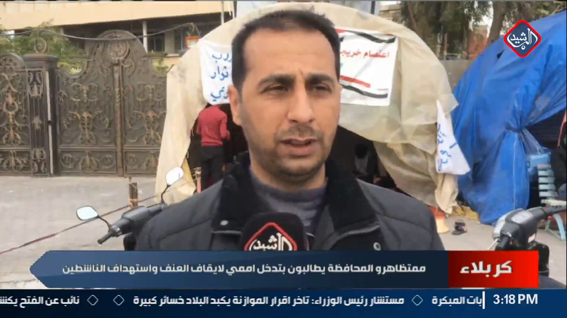 متظاهرو كربلاء يطالبون بتدخل أممي لإيقاف العنف واستهداف الناشطين