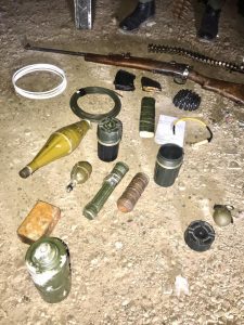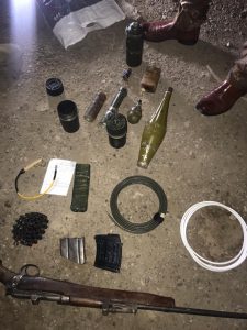 واضاف، انه “تم العثور على مواد متفجرة وبندقية مع شريط عتاد ورمانة هجومية عدد 2 وقناع كيمياوي وصواعق عدد ٤ مع قوالب مادة سي 4 عدد 2 مع فتيل أمان ورأس رمانة عدد ١ “.