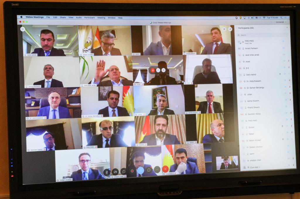 واضاف، انه “في إطار تطبيق الإجراءات الصحية الوقائية، عُقد الاجتماع عبر نظام مؤتمرات الفيديو (فيديو كونفرانس) بحضور نائب رئيس الوزراء قوباد طالباني وعدد من الوزراء، واستهله رئيس الوزراء بتوجيه الشكر لمواطني الإقليم على صمودهم في مواجهة الوضع، كما دعاهم للاستمرار في الحفاظ على سلامتهم والالتزام بالتعليمات الصحية.