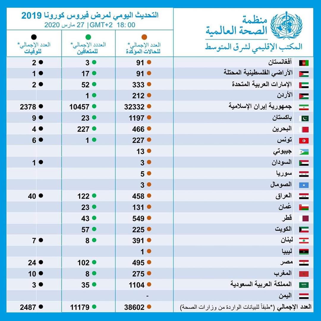 الاخبار العاجلةعربي ودوليمنظمة الصحة العالمية تنشر عدد الإصابات والوفيات بكورونا وحالات الشفاء بالشرق الأوسط قبل 6 سنوات 2 مشاهدات شارك قد يهمك أيضا أقتصاد الصناعة: تحقيق الاكتفاء الذاتي من غازي النيتروجين والأوكسجين وفرض رسوم على المستورد قبل 32 دقيقة 7 مشاهدات أقتصاد تعرف على اسعار صرف الدولار عند اغلاق البورصة قبل 33 دقيقة 4 مشاهدات عربي ودولي وزير الدفاع الإسرائيلي: لن ننسحب من غزة بالكامل أبداً وسنعيد استيطان شمال القطاع قبل ساعة واحدة 5 مشاهدات سياسة الكهرباء: خسارة المنظومة الكهربائية ما بين 4000 إلى 4500 ميغاواط قبل ساعة واحدة 4 مشاهدات سياسة وزارة الكهرباء تعلن توقف الغاز الإيراني بالكامل قبل ساعة واحدة 9 مشاهدات