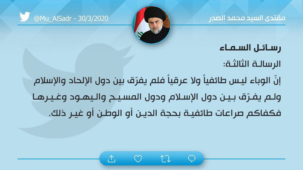 الاخبار العاجلةمحلياتالصدر مغرداً: كفاكم صراعات طائفية بحجة الدين او الوطن او غير ذلك قبل 6 سنوات 4 مشاهدات شارك قد يهمك أيضا عربي ودولي اشتباكات بين قسد والجيش السوري قرب مسكنة ومقتل جنديين قبل 14 دقيقة 5 مشاهدات عربي ودولي المرشد الإيراني: نحمل ترامب مسؤولية التسبب بسقوط ضحايا وأضرار وتشويه سمعة الإيرانيين خلال الاحتجاجات قبل 41 دقيقة 4 مشاهدات عربي ودولي غزة.. قصف إسرائيلي متواصل ووفاة رضيعة جراء البرد القارس قبل 54 دقيقة 4 مشاهدات أمن زاولت المهنة 6 سنوات.. اعتقال متهمة انتحلت صفة طبيبة نسائية وتجميل في بغداد قبل ساعة واحدة 8 مشاهدات سياسة السليمانية.. اجتماعات بين الاتحاد والأحزاب الكردية لمناقشة تشكيل حكومة الإقليم قبل ساعتين 11 مشاهدات