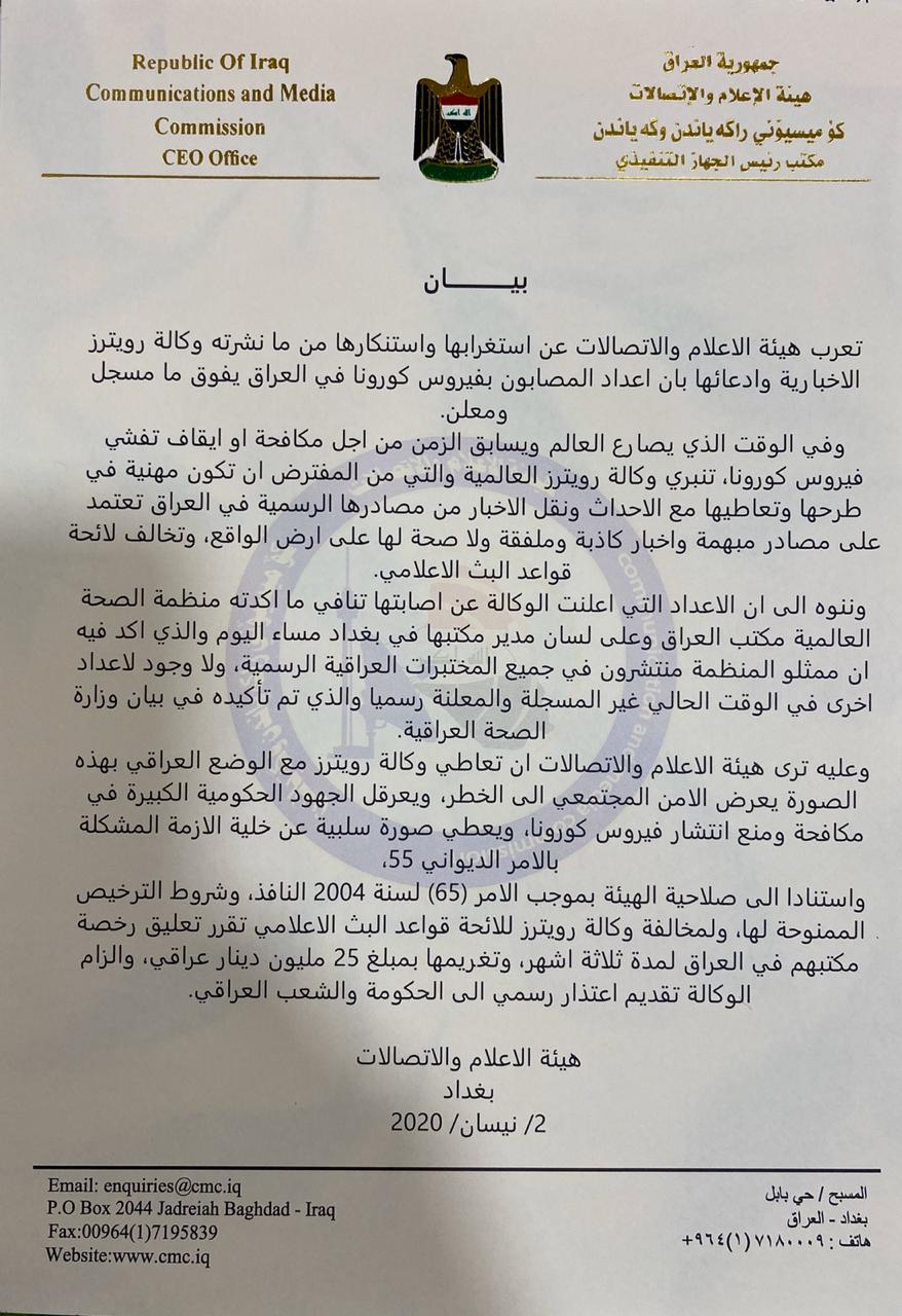 الاخبار العاجلةمحلياتبالوثيقة .. هيئة الاعلام والاتصالات تعلق رخصة عمل وكالة رويترز 3 اشهر وتغريمها 25 مليون دينار قبل 6 سنوات 18 مشاهدات شارك قد يهمك أيضا أقتصاد التجارة تؤكد عدم وجود أي زيادة في التعرفة الجمركية الخاصة بالمواد الغذائية قبل 37 دقيقة 3 مشاهدات عربي ودولي وكالة الأنباء الأردنية: هزة أرضية في البحر الميت بقوة 4.1 درجة على مقياس ريختر قبل ساعتين 6 مشاهدات أقتصاد انخفاض اسعار الذهب بعد وصوله الى مستويات قياسية متأثرًا بموقف ترامب من ايران قبل ساعتين 11 مشاهدات محليات تراجع اسعار النفط بعد ارتفاع استمر عدة ايام تزامنًا مع موقف ترامب الاخير من ايران قبل 3 ساعات 9 مشاهدات محليات الانواء الجوية: أمطار وثلوج وانخفاض في درجات الحرارة خلال الايام المقبلة قبل 3 ساعات 6 مشاهدات