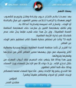 الاخبار العاجلةمحلياتالصدر يغرد بشأن تهديد ترامب للصين وقطع التمويل عن منظمة الصحة العالمية قبل 6 سنوات 6 مشاهدات شارك قد يهمك أيضا أقتصاد ارتفاع أسعار النفط وسط مخاوف بشأن الإمدادات بسبب توترات إيران قبل 6 دقائق 2 مشاهدات عربي ودولي ترامب يعلن نفسه حاكما مؤقتا لفنزويلا قبل 42 دقيقة 6 مشاهدات رياضة برشلونة يتغلب على ريال مدريد ويتوج بكأس السوبر الاسباني قبل 9 ساعات 18 مشاهدات محليات ميسان تعطل الدوام الرسمي الخميس المقبل بذكرى استشهاد الإمام الكاظم (عليه السلام) قبل 10 ساعات 18 مشاهدات عربي ودولي مسؤول أمريكي: ترامب يطلع على خيارات عسكرية جديدة لضرب إيران قبل 10 ساعات 12 مشاهدات
