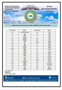 الاخبار العاجلةمحلياتبالجداول .. حالة الطقس ودرجات الحرارة المتوقعة خلال الايام الاربعة المقبلة قبل 6 سنوات 3 مشاهدات شارك اقرأ ايضا ميسان تعطل الدوام الرسمي الخميس المقبل بذكرى استشهاد الإمام الكاظم (عليه السلام) الرصد الزلزالي: تسجيل حدوث هزة أرضية بقوة 4.7 درجة شمال شرقي البصرة المرور تعلن اتخاذ الاجراءات القانونية بحق مواطن اعتدى على احد منتسبيها في نينوى وزيرة المالية: ناقشنا مع وزارة الكهرباء تفعيل الجباية الإلكترونية لزيادة الموارد وتقليل الدعم الحكومي قد يهمك أيضا رياضة برشلونة يتغلب على ريال مدريد ويتوج بكأس السوبر الاسباني قبل 5 ساعات 8 مشاهدات محليات ميسان تعطل الدوام الرسمي الخميس المقبل بذكرى استشهاد الإمام الكاظم (عليه السلام) قبل 6 ساعات 15 مشاهدات عربي ودولي مسؤول أمريكي: ترامب يطلع على خيارات عسكرية جديدة لضرب إيران قبل 6 ساعات 11 مشاهدات سياسة وزير الخارجية ونظيره القطري يؤكدان أهمية وقف أعمال العنف في حلب قبل 6 ساعات 9 مشاهدات عربي ودولي ايران تعلن الحداد ثلاثة ايام وتوجه رسالة عاجلة إلى مجلس الأمن قبل 6 ساعات 39 مشاهدات