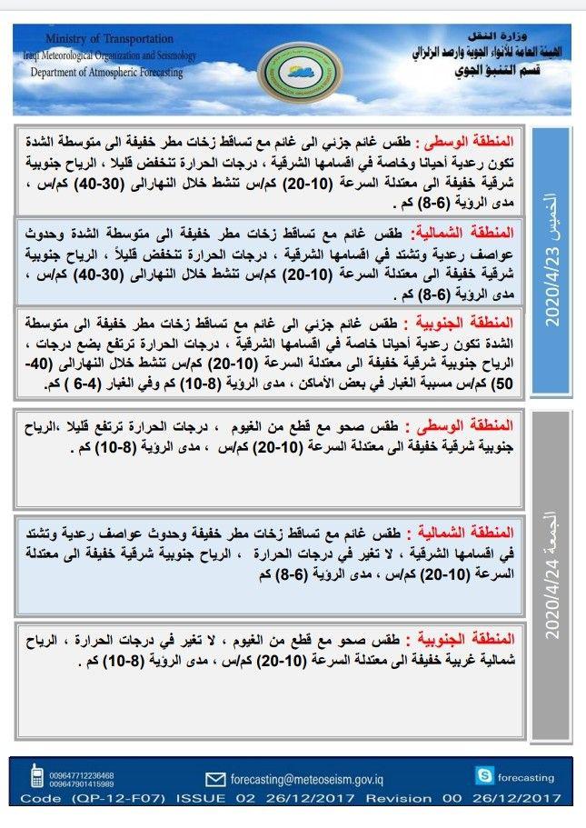 الاخبار العاجلةمحلياتبالجداول .. حالة الطقس في العراق خلال الايام الاربعة المقبلة قبل 6 سنوات 48 مشاهدات شارك قد يهمك أيضا الاخبار العاجلة المبعوث الأممي السابق أخضر الإبراهيمي: الهدف من أفغانستان كان العراق قبل 6 ساعات 23 مشاهدات محليات الأنواء: العراق يتأثر بموجة قطبية تتسبب بانخفاض درجات الحرارة إلى الصفر المئوي أو أدنى خلال الأيام القادمة قبل 6 ساعات 21 مشاهدات محليات العراق يعزي سويسرا بضحايا حادث منتجع كرانس-مونتانا للتزلج قبل 7 ساعات 28 مشاهدات محليات مصرع وإصابة 11 شخصاً بحادثي سير في ديالى والمثنى قبل 7 ساعات 9 مشاهدات أمن مقتل شخص بإطلاق نار وسط مدينة العمارة قبل 7 ساعات 26 مشاهدات