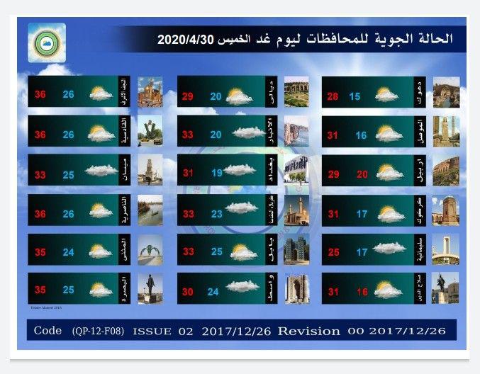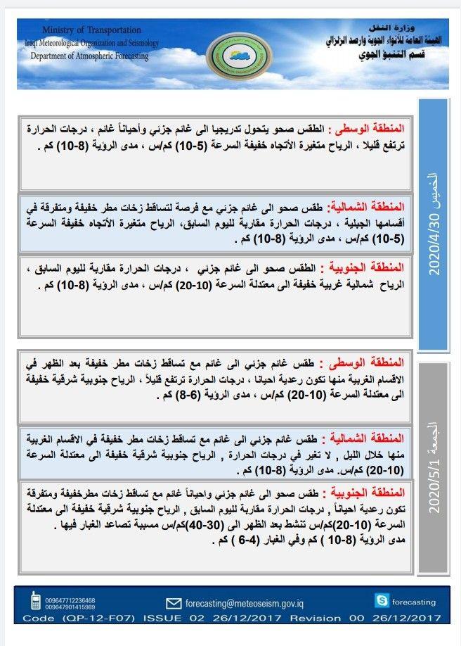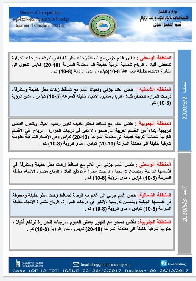 الاخبار العاجلةمحلياتالحالة الجوية ودرجات الحرارة في عموم العراق اليوم الاربعاء والايام المقبلة قبل 6 سنوات 2 مشاهدات شارك الطقس قد يهمك أيضا سياسة الخارجية العراقية تشدد على أهمية مواصلة الحوار البنّاء بين مختلف الأطراف اليمنية قبل 3 ساعات 7 مشاهدات سياسة الخارجية تؤكد موقف العراق الثابت الداعي إلى الحفاظ على أمن اليمن واستقراره قبل 3 ساعات 11 مشاهدات أمن خلاف عائلي على أرض زراعية ينتهي باصابة ضابط في الجيش جنوبي بغداد قبل 4 ساعات 8 مشاهدات سياسة رئيس البرلمان الشيخ هيبت الحلبوسي ووزير الداخلية يؤكدان أهمية دور مجلس النواب الرقابي والتشريعي قبل 4 ساعات 8 مشاهدات سياسة رئاسة الجمهورية تنفي تصريحًا منسوبًا للرئيس بشأن تحديد راتبه التقاعدي بـ 90 مليون دينار قبل 5 ساعات 8 مشاهدات