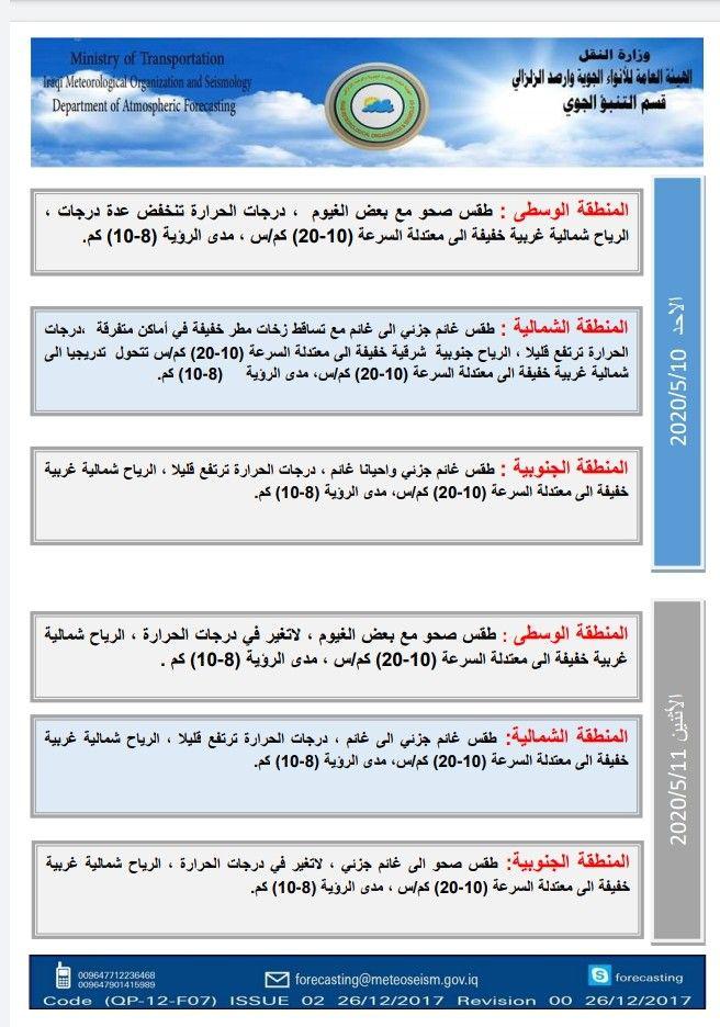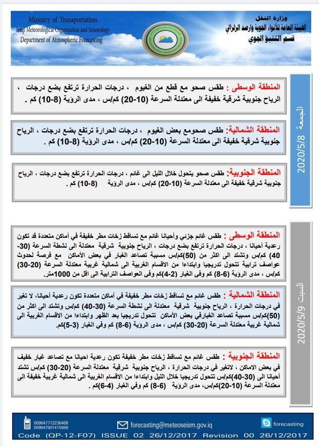 الاخبار العاجلةمحلياتالحالة الجوية ودرجات الحرارة في العراق لليوم الخميس والايام المقبلة قبل 6 سنوات 4 مشاهدات شارك قد يهمك أيضا محليات بينها ارتداء الملابس غير المخلة.. المرور تصدر توجيهات تنظم عمل أصحاب حافلات النقل الجماعي الداخلي قبل 4 ثواني محليات مصرع مواطن خمسيني نتيجة سقوط عجلته من أعلى جسر الشعلة ببغداد بسبب الضباب قبل 4 دقائق 2 مشاهدات سياسة المفوضية تنشر المادة الخاصة بالمقاعد البرلمانية الشاغرة واستبدالها قبل 8 دقائق 3 مشاهدات محليات الثقافة: منحة الصحفيين والفنانين والأدباء بانتظار إشعار الصرف من المالية قبل 18 دقيقة 5 مشاهدات محليات توقف الرحلات الجوية في مطار بغداد بشكل مؤقت بسبب الضباب قبل 51 دقيقة 9 مشاهدات