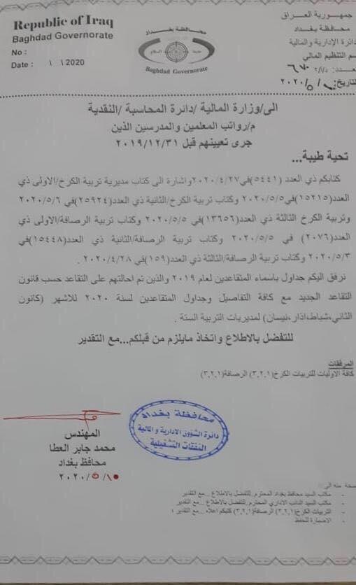 الاخبار العاجلةمحلياتبالوثيقة .. محافظة بغداد ترفع اسماء المحالين على التقاعد لإطلاق رواتب المتعينين الجدد في مديريات التربية قبل 6 سنوات 6 مشاهدات شارك قد يهمك أيضا أقتصاد الدولار يغلق على انخفاض في الاسواق المحلية قبل 35 دقيقة 4 مشاهدات أقتصاد وزير التجارة: أكثر من 4 ملايين اسم وهمي ومتكرر ومسافر بملف البطاقة التموينية قبل ساعة واحدة 6 مشاهدات محليات اخماد حريق بناية تجارية في منطقة الاعظمية قبل ساعتين 7 مشاهدات محليات اندلاع حريق داخل بناية متخذة كقاعة للاعراس في ساحة عنتر بمنطقة الاعظمية قبل 3 ساعات 14 مشاهدات ثقافة وفن بعد مصرعها بحريق في منزلها.. مساعدة الفنانة "نيفين مندور" تزعم مقتلها وتطالب بالتحقيق قبل 4 ساعات 10 مشاهدات