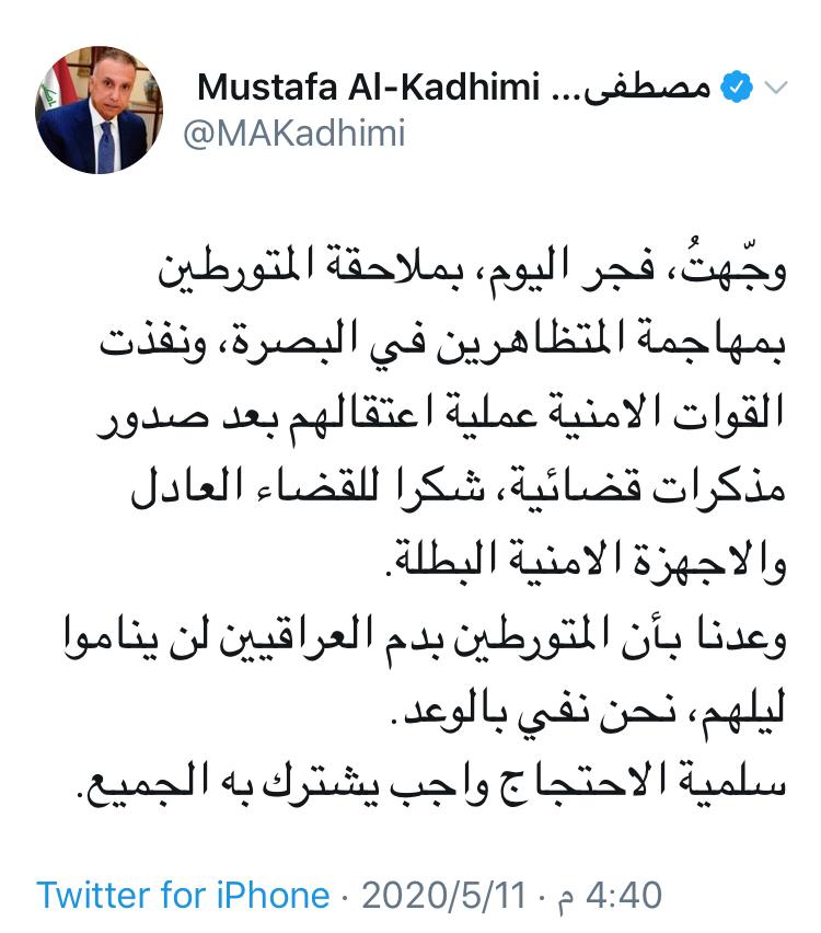 أمنالاخبار العاجلةالكاظمي: وجهت بملاحقة المتورطين بمهاجمة المتظاهرين في البصرة وقد تم اعتقالهم قبل 6 سنوات 5 مشاهدات شارك مصطفى الكاظمي قد يهمك أيضا محليات مفوضية الانتخابات تطلق استمارة طلبات تشكيل إقليم البصرة قبل 3 ساعات 20 مشاهدات الحكم الرابع كواليس الصراعات داخل اتحاد الكرة اليوم في الحكم الرابع قبل 3 ساعات 8 مشاهدات عربي ودولي القيادة الوسطى الأمريكية: قتلنا 14 إرهابيًا من داعش واعتقلنا 119 خلال الشهور الستة الماضية قبل 4 ساعات 10 مشاهدات سياسة الرئيس الحلبوسي يؤكد على اعضاء كتلة "تقدم" ان يكونوا قدر المسؤولية بالحفاظ على الاستحقاقات قبل 4 ساعات 8 مشاهدات عربي ودولي الصحة العالمية: مقتل أكثر من 1600 شخص خلال هجمات على المراكز الصحية في السودان قبل 4 ساعات 6 مشاهدات