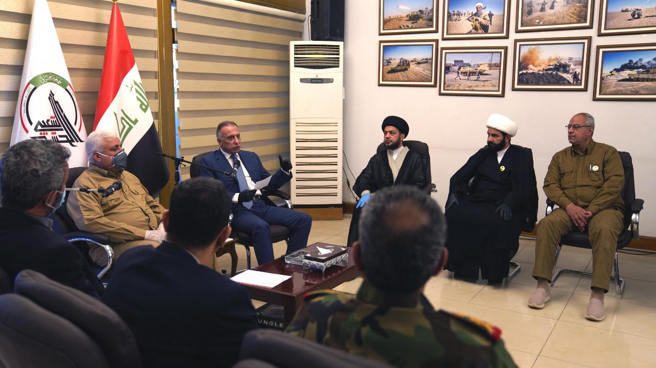 وحذر الكاظمي، بحسب البيان، “من وجود بعض الأصوات النشاز التي تحاول ايجاد فجوة بين الحشد وبين الدولة، قائلاً، إن هذا التشكيك يجب أن يتوقف”، لافتاً، الى أن “الحشد تأسس استجابة لفتوى المرجعية الدينية ممثلة بالسيد علي السيستاني وأن الانتقاص من شهدائه من قبل أية جهة كانت أمر مرفوض تماماً”.