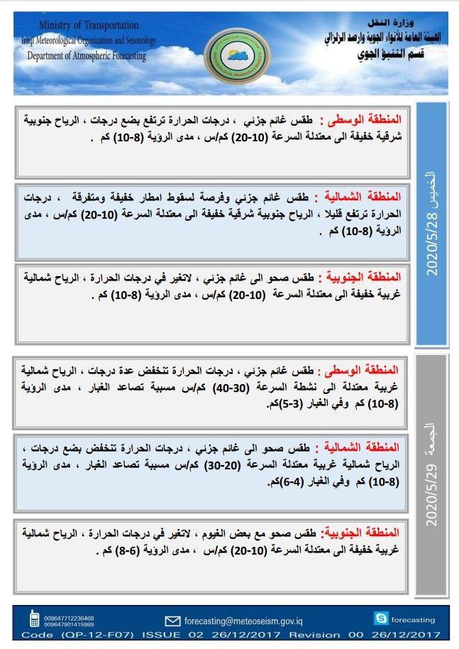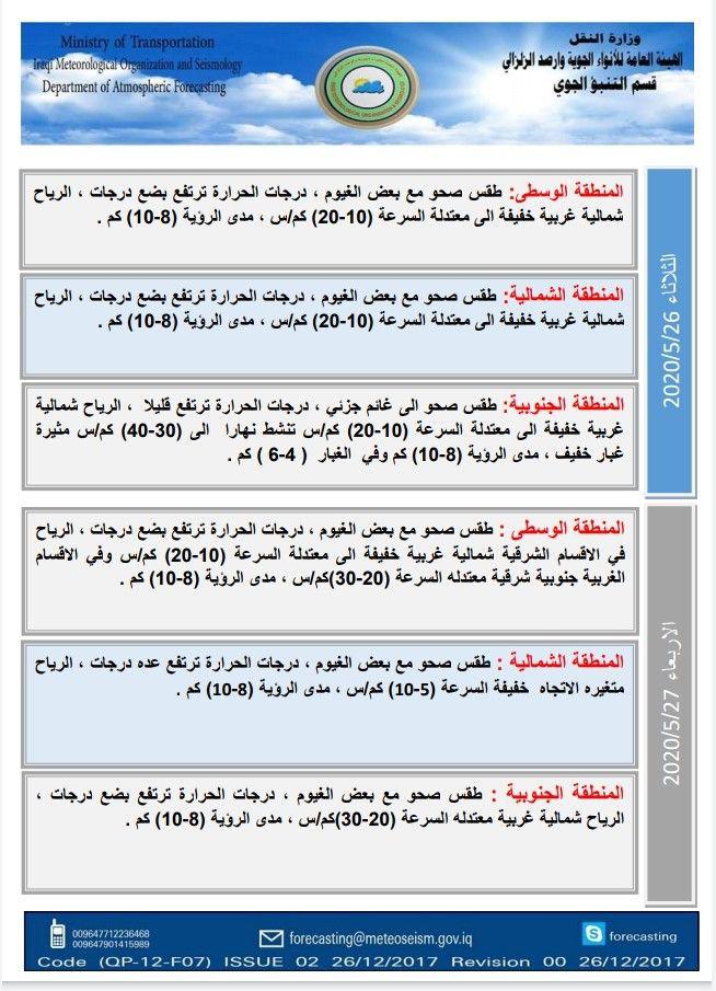 الاخبار العاجلةمحلياتالحالة الجوية ودرجات الحرارة في العراق لليوم الاثنين والايام المقبلة قبل 6 سنوات 3 مشاهدات شارك قد يهمك أيضا أمن جنايات البصرة: الإعدام بحق تاجر مخدرات بحوزته 2 كغم من مادة الافيون قبل 3 دقائق 2 مشاهدات أمن يجب عدم تجاوزها دستوريا.. مجلس القضاء الأعلى يعيد نشر تواريخ الاستحقاقات الدستورية بخطوط حمراء قبل 15 دقيقة 2 مشاهدات محليات عودة الحركة الملاحية في مطار بغداد الدولي قبل 32 دقيقة 5 مشاهدات عربي ودولي إعلام: واشنطن تعرض مسارا جديدا لتسوية ملف "الضمانات" بشأن أوكرانيا قبل 35 دقيقة 3 مشاهدات أقتصاد انخفاض أسعار الصرف في الأسواق المحلية: 143750 ديناراً مقابل كل 100 دولار قبل ساعة واحدة 9 مشاهدات