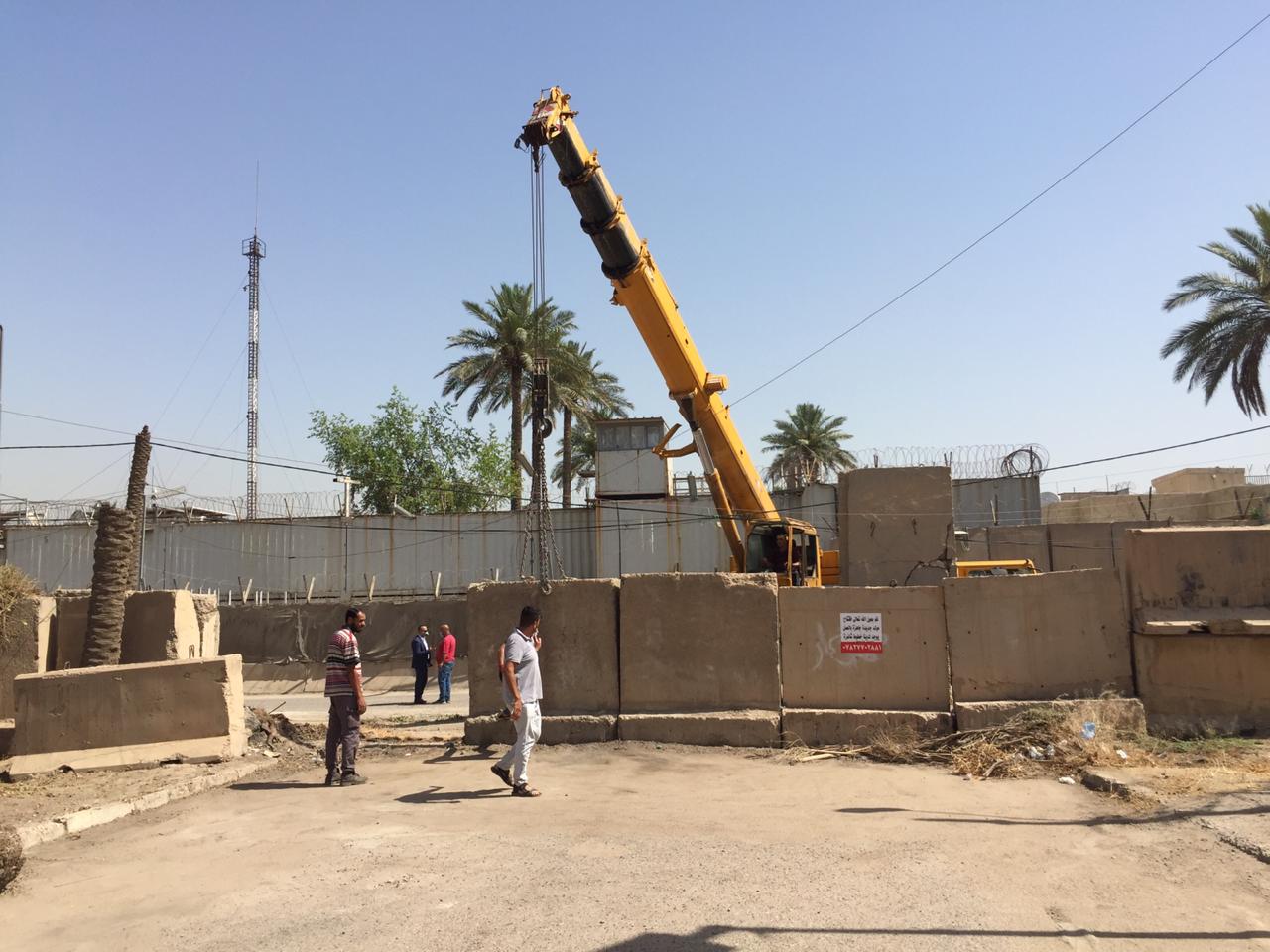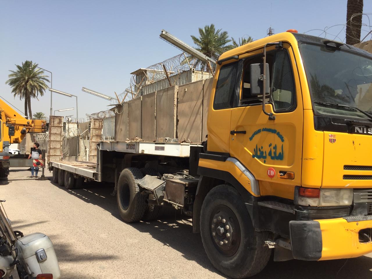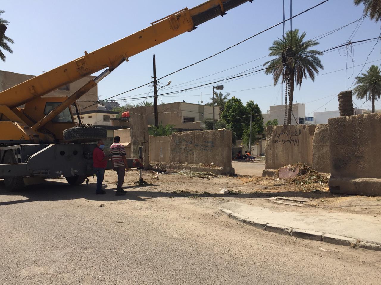 وقالت الامانة، في بيان تلقته الرشيد، ان “ملاكاتها في دائرة الوحدات الانتاجية ودائرة بلدية المنصور وبمتابعة مكتب امين بغداد وبالتنسيق مع خلية المتابعة والفرقة الخاصة التابعة لمكتب رئيس الوزراء، باشرت برفع الكتل الكونكريتية واعادة فتح شارع 1 ضمن المحلة 609 والذي يضم مبنى السفارة السورية بالاضافة الى رفع الكتل الكونكريتية من محيط مصرف الرافدين فرع المنصور ضمن نفس المحلة”.