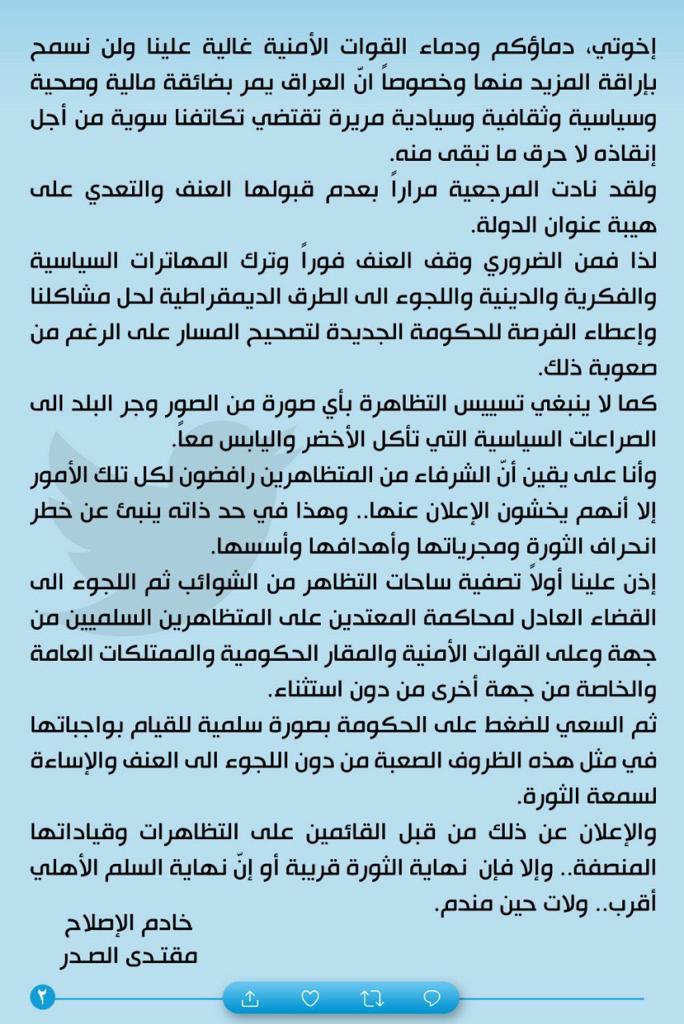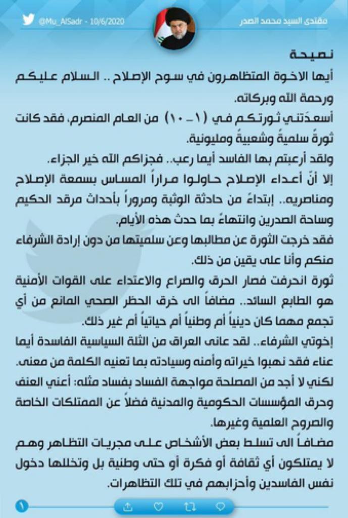 الاخبار العاجلةمحلياتالصدر يغرد بشأن التظاهرات ويدعو الى عدم اتباع العنف والتسييس قبل 6 سنوات 2 مشاهدات شارك قد يهمك أيضا أمن الاعلام الامني: مقتل مجموعة ارهابية بضربة جوية استهدفت مضافتين شمالي راوة قبل 12 دقيقة 3 مشاهدات محليات العراق يدعو مُنظَّمة الشفافيَّة الدوليَّة إلى اعتماد فرع وطني لها في بغداد قبل 60 دقيقة 7 مشاهدات عربي ودولي العدل الأمريكية تحذر من شبكة تطرف على الإنترنت تستغل المراهقين قبل ساعة واحدة 7 مشاهدات أقتصاد وزير الخارجيّة يؤكد حرص العراق على تعميق الشراكة الاستراتيجيّة مع منظمة الأغذية والزراعة (فاو) قبل ساعة واحدة 6 مشاهدات عربي ودولي بريطانيا تفرض عقوبات على داعمين سابقين للأسد قبل ساعة واحدة 6 مشاهدات