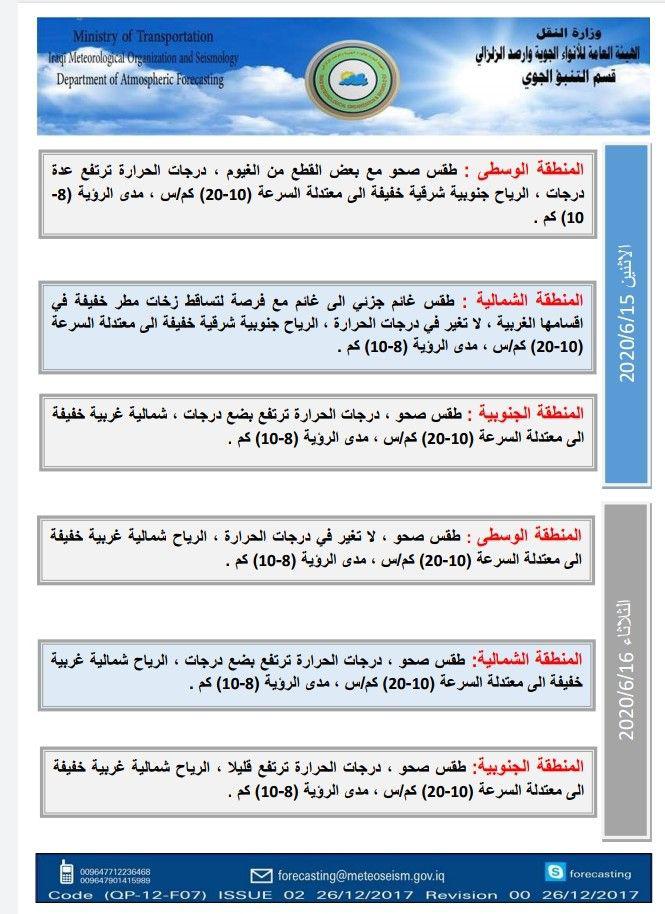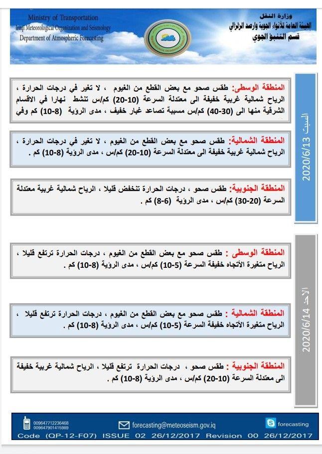 الاخبار العاجلةمحلياتالحالة الجوية ودرجات الحرارة في العراق لليوم الجمعة والايام المقبلة قبل 6 سنوات 2 مشاهدات شارك قد يهمك أيضا أمن العمليات المشتركة: الإنزال الجوي العراقي في سوريا لا علاقة له بالضربة الأمريكية على داعش قبل 6 دقائق 2 مشاهدات عربي ودولي الأردن يعلن مشاركته مع أمريكا في الهجوم على داعش جنوبي سوريا قبل 16 دقيقة 3 مشاهدات أمن العراق يضبط شحنات كبيرة من الأدوية المهربة مخفية خلف مواد رخيصة الثمن بميناء أم قصر قبل 36 دقيقة 8 مشاهدات عربي ودولي بـ(112) مليار دولار .. خطة أميركية جديدة لإعادة إعمار غزة قبل 40 دقيقة 6 مشاهدات رياضة برشلونة يجهّز لصفقة كبيرة.. نجم مانشستر سيتي هدف استراتيجي قبل 58 دقيقة 6 مشاهدات