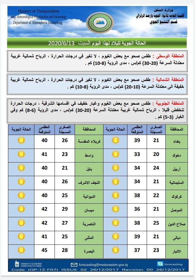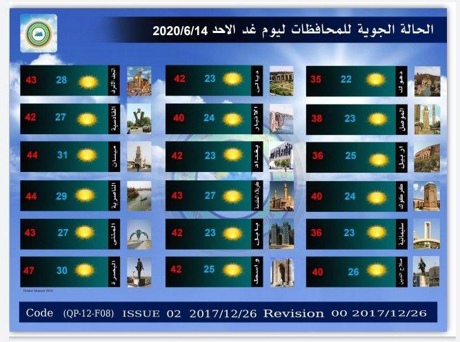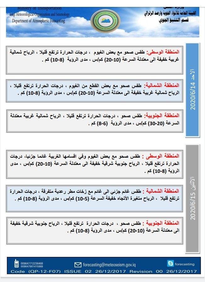 الاخبار العاجلةمحلياتالحالة الجوية ودرجات الحرارة في العراق لليوم السبت والايام المقبلة قبل 6 سنوات 1 مشاهدة شارك الطقس قد يهمك أيضا محليات تعليق الرحلات الجوية في مطار اربيل الدولي بسبب الضباب الكثيف قبل 22 دقيقة 9 مشاهدات سياسة الإطار التنسيقي يؤكد أهمية استمرار الحوارات بين الأطراف السياسية لحسم ملف تشكيل الحكومة قبل 24 دقيقة 2 مشاهدات سياسة الإطار التنسيقي يدعو إلى عقد جلسة مجلس النواب في أقرب وقت ممكن قبل 26 دقيقة 3 مشاهدات الثامنة الإطار يجتمع للحسم.. دخان أبيض أم استمرار الاحتراق قبل 35 دقيقة 7 مشاهدات محليات محافظ ميسان يوجه بتقليص الدوام الرسمي في الدوائر والمؤسسات الحكومية بالمحافظة قبل ساعة واحدة 10 مشاهدات