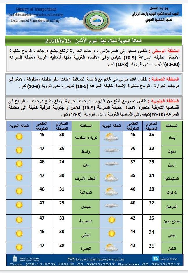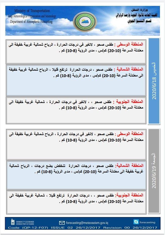 الاخبار العاجلةمحلياتالحالة الجوية ودرجات الحرارة في العراق لليوم الاثنين والايام المقبلة قبل 6 سنوات 4 مشاهدات شارك قد يهمك أيضا محليات طقس العراق.. ضباب وانخفاض بدرجات الحرارة خلال الأيام المقبلة قبل دقيقة واحدة 2 مشاهدات أقتصاد النفط يواصل الصعود بدعم من النمو الاقتصادي الأميركي ومخاطر الإمدادات قبل 7 دقائق 1 مشاهدة سياسة المجلس السياسي الوطني يعلن الاتفاق على آليات تسهل حسم اختيار رئيس مجلس النواب قبل 9 ساعات 12 مشاهدات الحكم الرابع الـVAR يتلاعب بدورينا .. تفاصيل صادمة في الحكم الرابع قبل 9 ساعات 11 مشاهدات عربي ودولي الحكومة الليبية تعلن مقتل رئيس الأركان محمد الحداد ومرافقيه اثر تحطم طائرتهم في أنقرة قبل 9 ساعات 22 مشاهدات