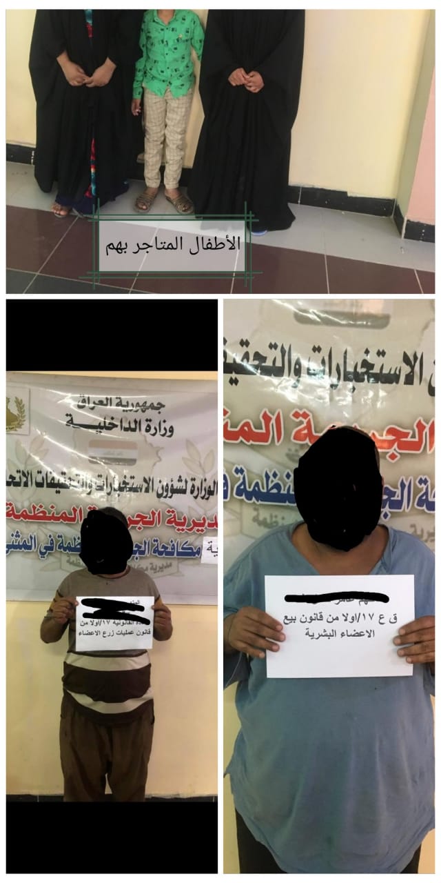 واضافت، انه “تم القبض عليهما بالجرم المشهود أثناء قيامهما ببيع طفل يبلغ من العمر 6 سنوات وابنتين بعمر 14 سنة و15 سنة”.