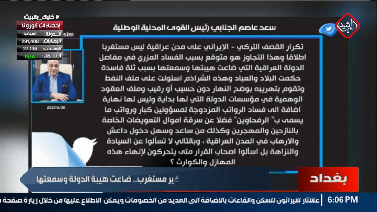 محلياتالجنابي يستنكر الاعتداءات على السيادة العراقية .. ويؤكد: لاغرابة والبلاد تحكمه ثلة فاسدة قبل 6 سنوات 6 مشاهدات شارك قد يهمك أيضا عربي ودولي الولايات المتحدة تدفع 3 آلاف دولار لكل مهاجر غير شرعي مقابل مغادرة اراضيها قبل 6 ساعات 10 مشاهدات الحكم الرابع الاهلي يضرب الشرطة بقوة ويزيد من جراحاتهم آسيوياً.. قبل 7 ساعات 10 مشاهدات رياضة الشرطة يخسر أمام الأهلي السعودي بخماسية في دوري أبطال آسيا قبل 7 ساعات 32 مشاهدات سياسة الإعمار والتنمية يقدم وثيقة للإطار التنسيقي تتضمن 5 معايير لاختيار مرشح رئاسة الحكومة قبل 7 ساعات 14 مشاهدات سياسة الإطار التنسيقي يؤكد موقفه الداعم لحصر السلاح بيد الدولة قبل 7 ساعات 10 مشاهدات