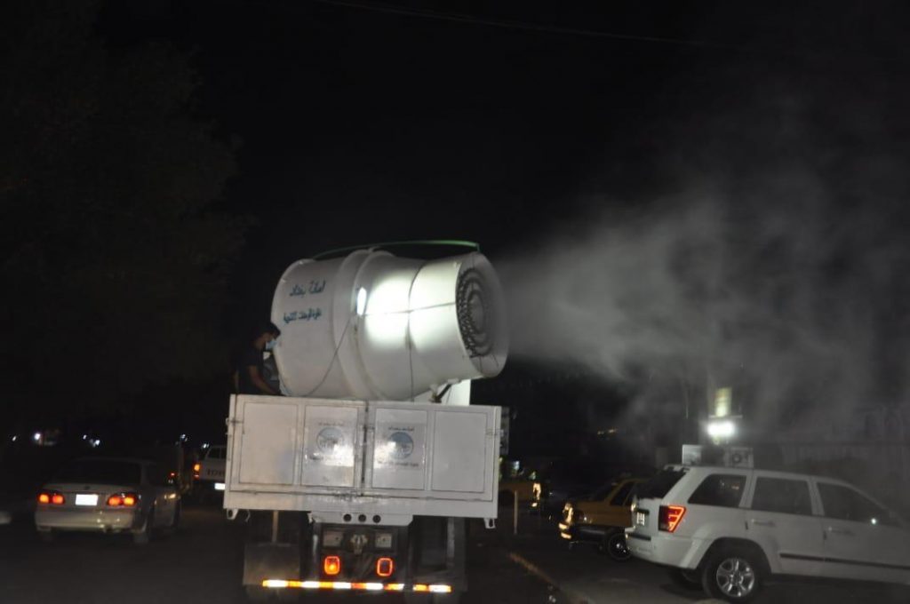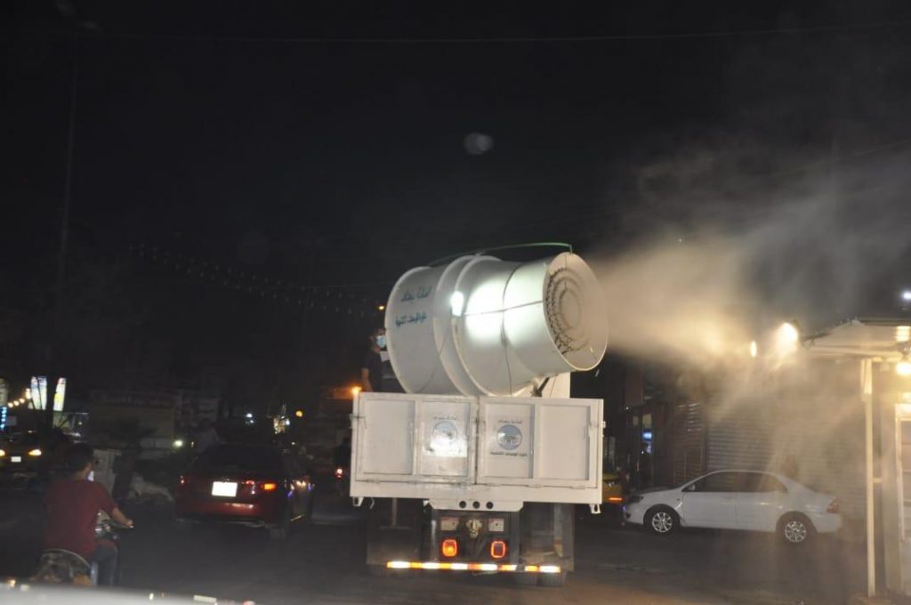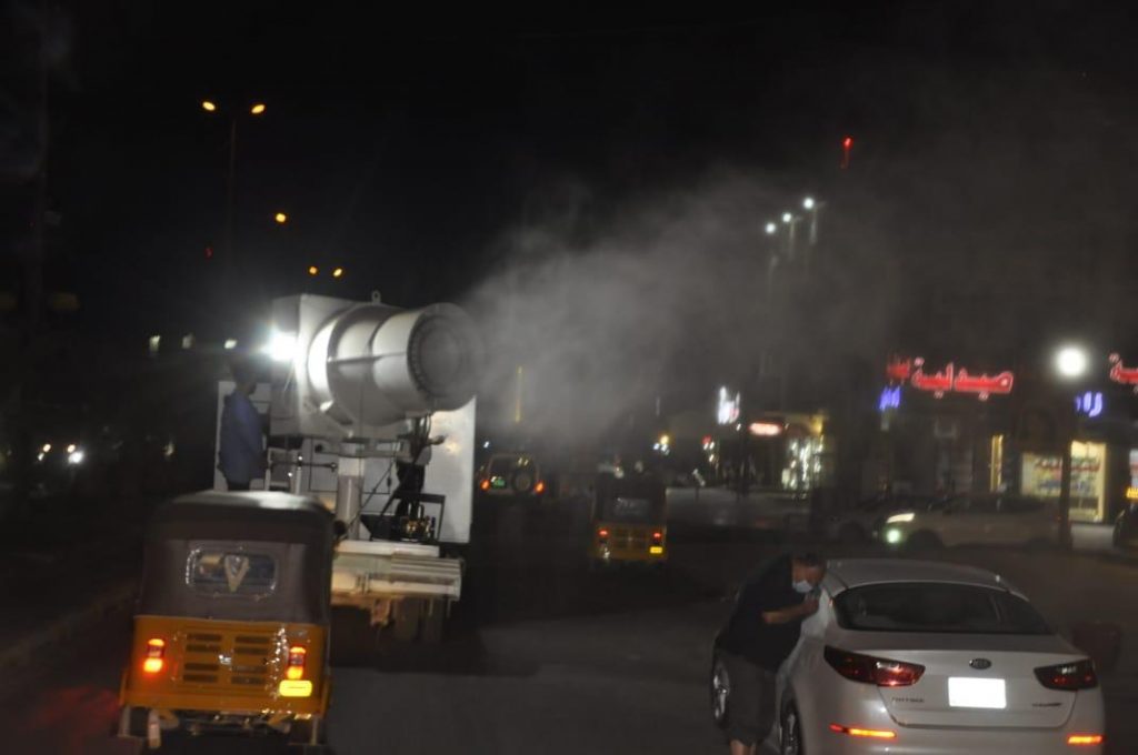 واضافت، ان “ملاكات الامانة قامت بحملة ليلية تم خلالها تعفير شارع ابو القاسم الشابي وشارع عدن وشارع زين القوس وشارع فهمي المدرس مع تعفير سوق 4000 الشعبي بواسطة مدافع التعفير العملاقة المصنعة من قبل ملاكات الامانة لدعم جهود الملاكات الصحية في مواجهة جائحة كورونا وبالتنسيق مع عدد من الجهات المختلفة”.