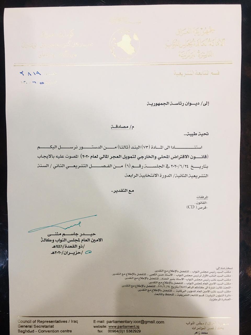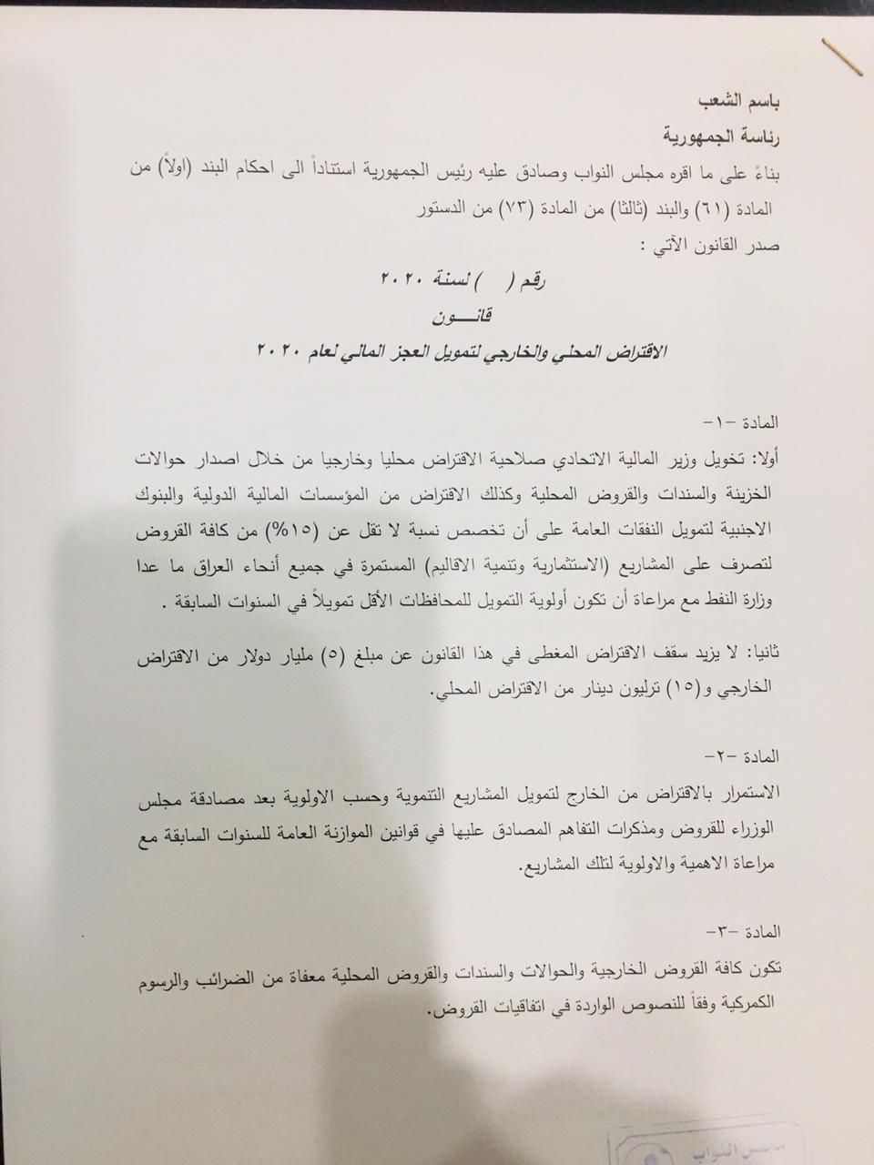 الاخبار العاجلةمحلياتبالوثائق .. الصيغة النهائية لقانون الاقتراض الداخلي والخارجي قبل 5 سنوات 1 مشاهدة شارك قد يهمك أيضا سياسة العراق وباكستان يناقشان الارتقاء بواقع التبادل التجاري والسجناء والعمالة قبل 7 ساعات 10 مشاهدات مع ياسر عامر الفصائل تنزع سلاحها و”النجباء والكتائب” يرفضون!! قبل 8 ساعات 12 مشاهدات سياسة المجلس السياسي الوطني يقرر عقد اجتماع الثلاثاء المقبل لمواصلة النقاشات قبل 8 ساعات 14 مشاهدات سياسة المجلس السياسي الوطني يؤكد الالتزام بالتوقيتات الدستورية لجلسة البرلمان قبل 8 ساعات 14 مشاهدات عربي ودولي السويد.. حادثة تدنيس جديدة للمصحف في مسجد ستوكهولم تؤجج مشاعر المسلمين قبل 9 ساعات 9 مشاهدات