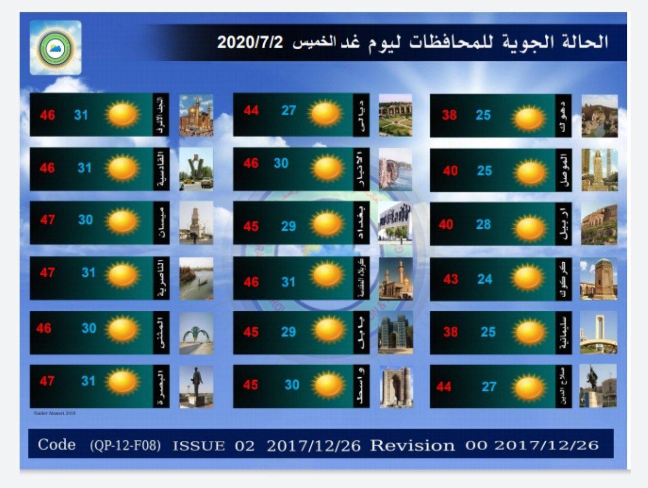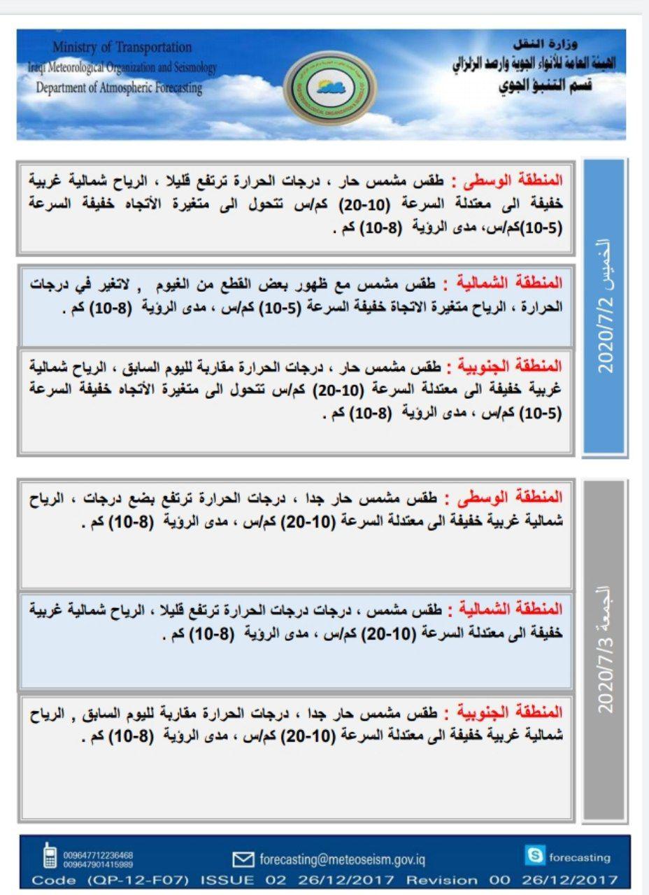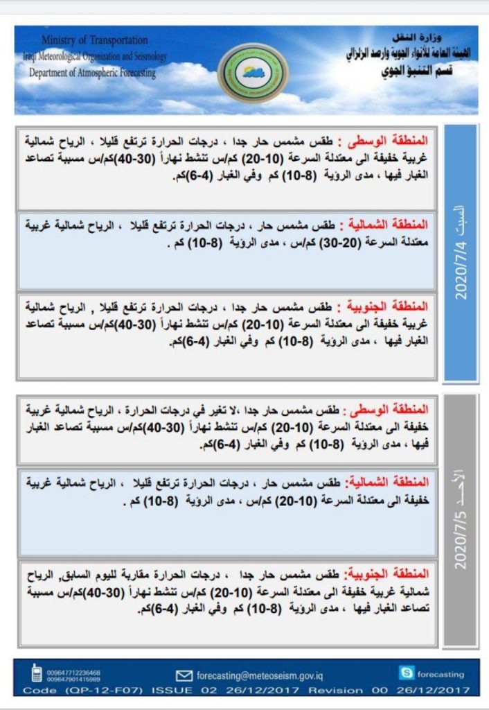 الاخبار العاجلةمحلياتالحالة الجوية ودرجات الحرارة في العراق لليوم الاربعاء والايام المقبلة قبل 5 سنوات شارك الطقس قد يهمك أيضا عربي ودولي زيلينسكي يطالب واشنطن بتكثيف ضغوطها على روسيا لإنهاء النزاع في أوكرانيا قبل 11 دقيقة 3 مشاهدات محليات طقس العراق.. ضباب وانخفاض في درجات الحرارة خلال الأيام المقبلة قبل 31 دقيقة 1 مشاهدة عربي ودولي وزير الخارجية التركي: الخروقات الإسرائيلية تعرقل الانتقال إلى المرحلة الثانية في غزة قبل 58 دقيقة 7 مشاهدات أمن جهاز المخابرات ينفي تلقي الحكومة تحذيرًا عربيًا وغربيًا بقرب تعرض العراق لضربات عسكرية قبل 9 ساعات 23 مشاهدات أمن الداخلية تنفي اي محاولة لعبور اشخاص من سوريا عبر الجدار الكونكريتي على الشريط الحدودي قبل 11 ساعة 15 مشاهدات