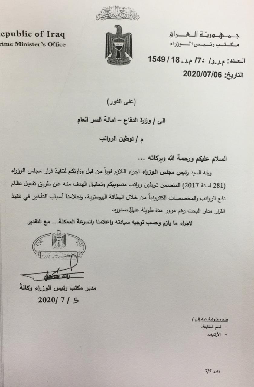 الاخبار العاجلةمحلياتبالوثيقة .. الكاظمي يوجه وزارة الدفاع بالإجراء الفوري لتوطين رواتب منتسبي الوزارة قبل 5 سنوات 6 مشاهدات شارك قد يهمك أيضا أمن الإعلام الأمني تكشف تفاصيل عملية الانزال الجوي للقوات العراقية في سوريا قبل 39 دقيقة 12 مشاهدات عربي ودولي الجيش اللبناني يعلن تفكيك جهاز تجسس إسرائيلي متطور قبل 57 دقيقة 5 مشاهدات الثامنة بنادق الفصائل إلى الحرق! قبل ساعة واحدة 7 مشاهدات رياضة برشلونة يهزم فياريال ويعزز صدارته للدوري الاسباني قبل ساعة واحدة 6 مشاهدات سياسة الرئيس الحلبوسي يبحث مع السفير الألماني تعزيز التعاون الاقتصادي والامني بين البلدين قبل ساعتين 7 مشاهدات