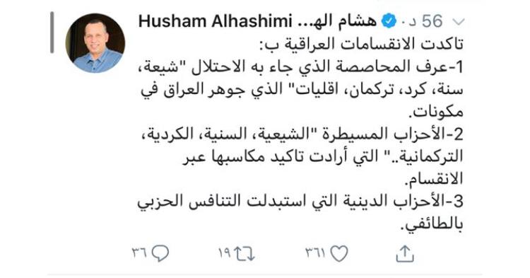 أمنالاخبار العاجلةقبل اغتياله بأقل من ساعة .. اخر تغريدة للخبير الامني هشام الهاشمي قبل 5 سنوات 1 مشاهدة شارك قد يهمك أيضا مع ياسر عامر الفصائل تنزع سلاحها و”النجباء والكتائب” يرفضون!! قبل 9 دقائق 4 مشاهدات سياسة المجلس السياسي الوطني يقرر عقد اجتماع الثلاثاء المقبل لمواصلة النقاشات قبل 56 دقيقة 8 مشاهدات سياسة المجلس السياسي الوطني يؤكد الالتزام بالتوقيتات الدستورية لجلسة البرلمان قبل 59 دقيقة 8 مشاهدات عربي ودولي السويد.. حادثة تدنيس جديدة للمصحف في مسجد ستوكهولم تؤجج مشاعر المسلمين قبل ساعة واحدة 7 مشاهدات أمن الإعلام الأمني تكشف تفاصيل عملية الانزال الجوي للقوات العراقية في سوريا قبل 3 ساعات 18 مشاهدات