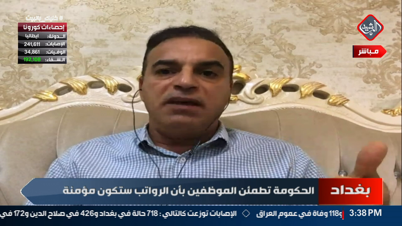 محلياتالحكومة تطمئن الموظفين بأن الرواتب ستكون مؤمنة د.صلاح عريبي خبير اقتصادي قبل 5 سنوات شارك قد يهمك أيضا سياسة العراق وباكستان يناقشان الارتقاء بواقع التبادل التجاري والسجناء والعمالة قبل 8 ساعات 10 مشاهدات مع ياسر عامر الفصائل تنزع سلاحها و”النجباء والكتائب” يرفضون!! قبل 8 ساعات 12 مشاهدات سياسة المجلس السياسي الوطني يقرر عقد اجتماع الثلاثاء المقبل لمواصلة النقاشات قبل 9 ساعات 17 مشاهدات سياسة المجلس السياسي الوطني يؤكد الالتزام بالتوقيتات الدستورية لجلسة البرلمان قبل 9 ساعات 14 مشاهدات عربي ودولي السويد.. حادثة تدنيس جديدة للمصحف في مسجد ستوكهولم تؤجج مشاعر المسلمين قبل 10 ساعات 9 مشاهدات