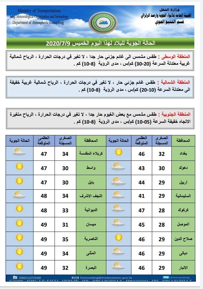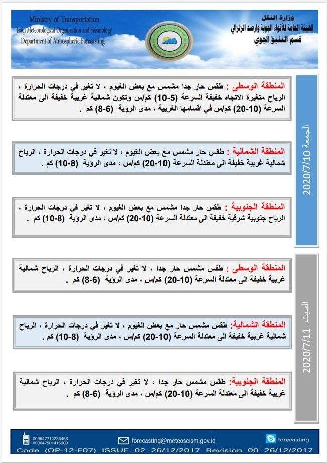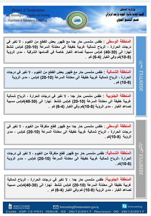 الاخبار العاجلةمحلياتالحالة الجوية ودرجات الحرارة في العراق لليوم الخميس والايام المقبلة قبل 5 سنوات 3 مشاهدات شارك قد يهمك أيضا محليات طقس العراق.. ضباب وفرصة لهطول أمطار خلال الأيام المقبلة قبل 25 دقيقة 4 مشاهدات أقتصاد برنت عند 61 دولاراً.. ارتفاع أسعار النفط بعد هجمات أوكرانية على روسيا وحصار أمريكي لفنزويلا قبل 52 دقيقة 4 مشاهدات سياسة مبعوث ترامب: نزع السلاح يجب أن يكون شاملاً وغير قابل للتراجع وبيانات النوايا وحدها لا تكفي قبل ساعة واحدة 10 مشاهدات مع ياسر عامر الفصائل تنزع سلاحها و”النجباء والكتائب” يرفضون!! قبل 10 ساعات 16 مشاهدات سياسة المجلس السياسي الوطني يقرر عقد اجتماع الثلاثاء المقبل لمواصلة النقاشات قبل 11 ساعة 20 مشاهدات