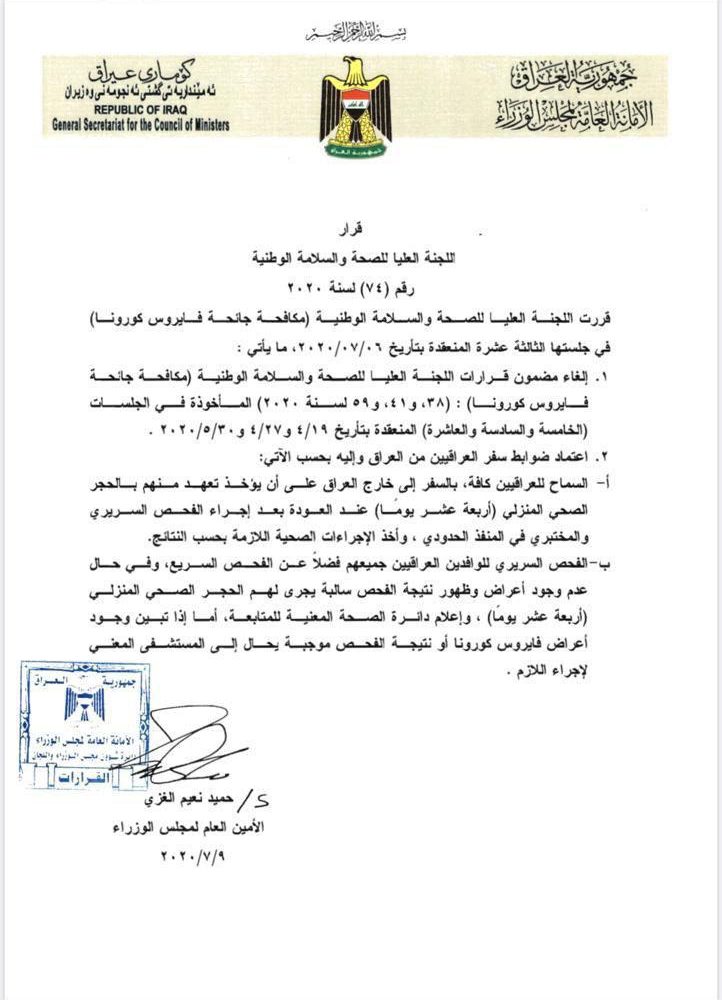 الاخبار العاجلةمحلياتبالوثيقة .. اللجنة العليا تقرر السماح للعراقيين بالسفر على ان يؤخذ تعهد منهم بالحجر المنزلي قبل 5 سنوات 8 مشاهدات شارك قد يهمك أيضا أقتصاد السيد الصدر: العرب والكرد إخوة ولا ينبغي تأجيج النعرات العرقية بل ويجب معاقبة فاعلها قانونياً قبل دقيقة واحدة عربي ودولي الخارجية الإيرانية: برنامجنا الصاروخي ليس مطروحا للتفاوض قبل 17 دقيقة 3 مشاهدات محليات التعليم تؤكد العمل بتعليمات الإجازة الدراسية قبل 23 دقيقة 4 مشاهدات أمن وزير الداخلية يعلن التعاقد لتوريد رادارات حديثة وقرب انجاز الاشارات الذكية في بغداد قبل 51 دقيقة 8 مشاهدات محليات نقيب أطباء أسنان العراق يدعو إلى تعيين خريجي كليات طب الأسنان ويؤكد ضرورة زيادة معدل القبول بالكليات الاهلية قبل ساعتين 6 مشاهدات