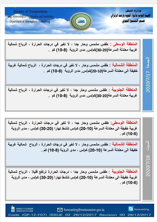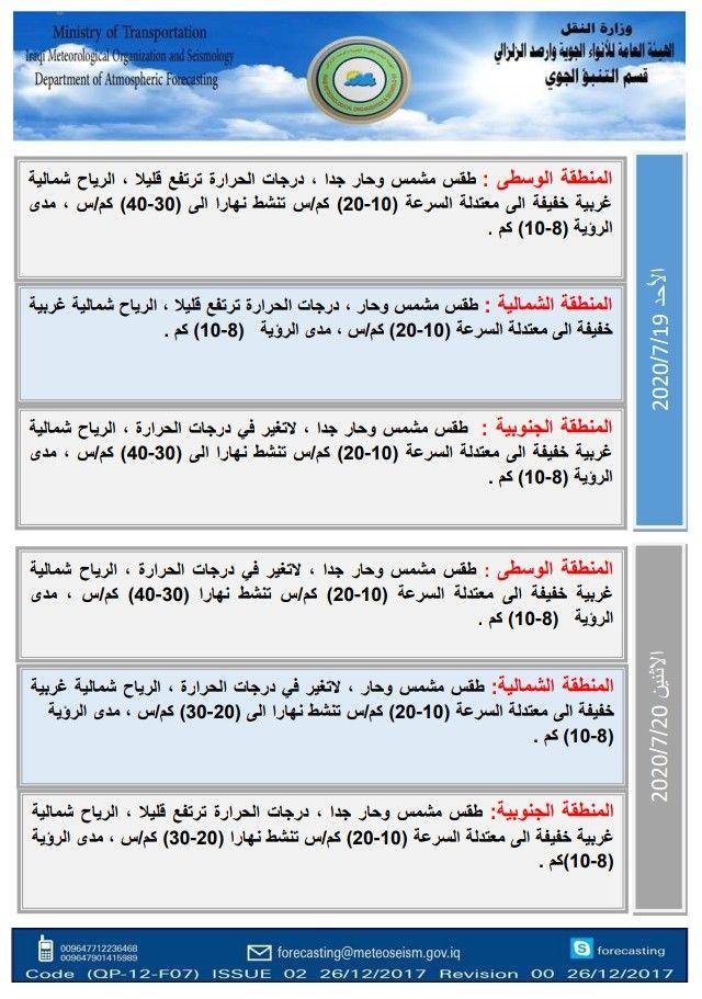 الاخبار العاجلةمحلياتالحالة الجوية ودرجات الحرارة في العراق لليوم الخميس والايام المقبلة قبل 5 سنوات شارك الطقس قد يهمك أيضا عربي ودولي بعد تقرير البنتاغون.. الصين ترد: لسنا في سباق تسلح نووي مع أحد قبل 29 دقيقة 4 مشاهدات محليات إقليم كردستان يعطل الدوام الرسمي ليوم الخميس المقبل قبل 56 دقيقة 6 مشاهدات محليات صلاح الدين تعطل الدوام الرسمي يومي الأربعاء والخميس المقبلين قبل 58 دقيقة 6 مشاهدات محليات بالفيديو والصور.. تظاهرة لخريجي كليات الطب للمطالبة بتعيينهم قبل ساعة واحدة 6 مشاهدات أمن الاستخبارات العسكرية تلقي القبض على 15 تاجراً ومروجاً للمخدرات في بغداد قبل ساعة واحدة 7 مشاهدات