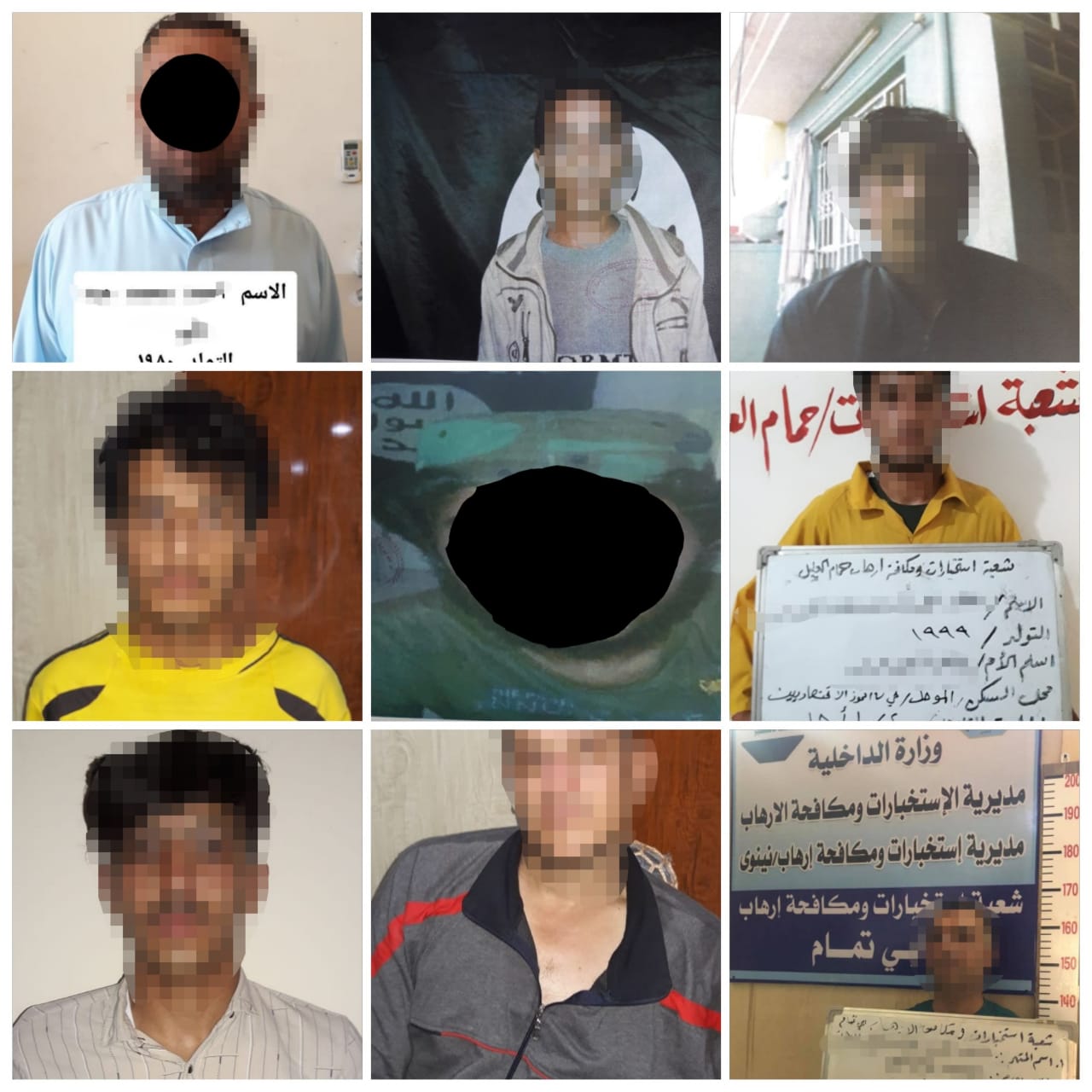 وقالت الوكالة، في بيان تلقته الرشيد، انه “من خلال المتابعة المستمرة لقواطع المسؤولية ولتجفيف منابع الإرهاب، القت مفارز المديرية العامة للاستخبارات ومكافحة الإرهاب العاملة ضمن وكالة الاستخبارات في وزارة الداخلية، القبض على (٩) إرهابيين بمناطق متفرقة من محافظة نينوى، مطلوبين وفق احكام المادة 4 ارهاب لانتمائهم لعصابات داعش الإرهابية”.