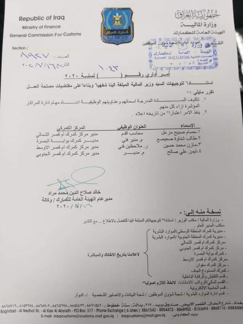 الاخبار العاجلةمحلياتبالوثيقة .. تكليف مدراء جدد لكمارك ام قصر الشمالي والاوسط والجنوبي وبوابة البصرة قبل 5 سنوات 7 مشاهدات شارك قد يهمك أيضا سياسة "الرشيد" تنشر نص قرارات مجلس الوزراء في جلسة اليوم قبل 8 دقائق 1 مشاهدة سياسة روسيا تعلن استعدادها للتعاون مع الحكومة العراقية المقبلة قبل 27 دقيقة 3 مشاهدات أقتصاد الصناعة: تحقيق الاكتفاء الذاتي من غازي النيتروجين والأوكسجين وفرض رسوم على المستورد قبل ساعتين 8 مشاهدات أقتصاد تعرف على اسعار صرف الدولار عند اغلاق البورصة قبل ساعتين 6 مشاهدات عربي ودولي وزير الدفاع الإسرائيلي: لن ننسحب من غزة بالكامل أبداً وسنعيد استيطان شمال القطاع قبل ساعتين 6 مشاهدات