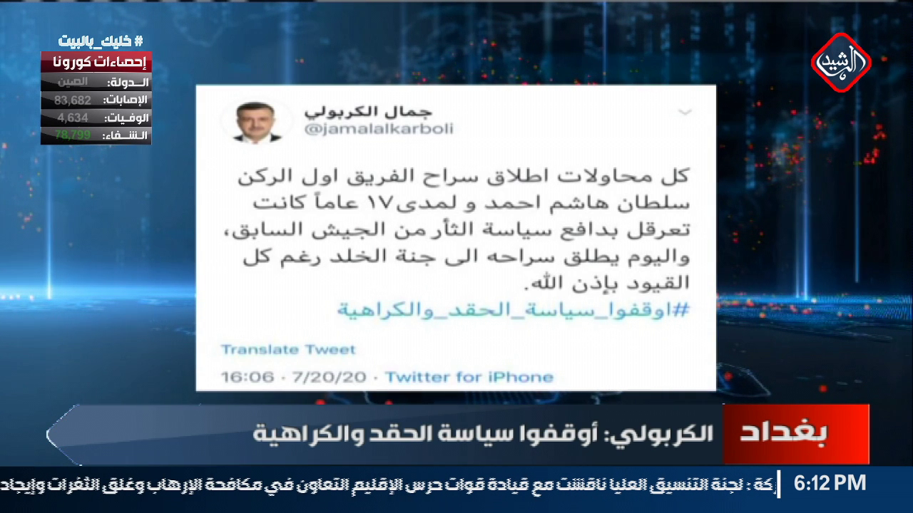 محلياتالكربولي: كل محاولات اطلاق سراح سلطان هاشم كانت تعرقل بدافع الثأر من الجيش السابق قبل 5 سنوات 4 مشاهدات شارك قد يهمك أيضا أقتصاد ارتفاع أسعار صرف الدولار مقابل الدينار العراقي مع الاغلاق قبل 16 دقيقة 5 مشاهدات محليات اكتشاف أثري في العراق يوثق تعايشا دينيا فريدا قبل 15 قرنا قبل 44 دقيقة 6 مشاهدات الاخبار العاجلة المجر لا تستبعد اندلاع حرب في أوروبا خلال عام 2026 قبل ساعة واحدة 5 مشاهدات عربي ودولي روسيا تعتزم إنشاء محطة نووية على القمر لتوفير الطاقة لبرنامجها الفضائي قبل ساعة واحدة 6 مشاهدات محليات التربية توافق على تمديد فترة التقديم للامتحانات التمهيدية (الخارجي) إلى نهاية العام الحالي قبل ساعة واحدة 6 مشاهدات