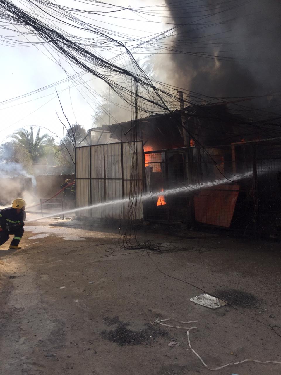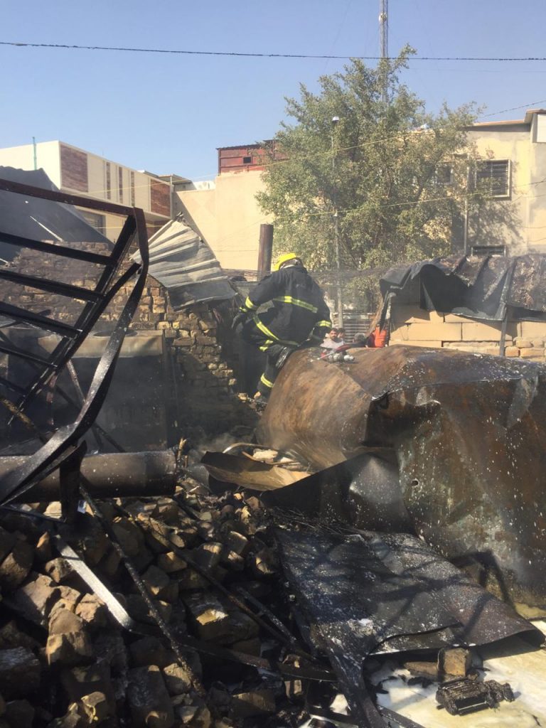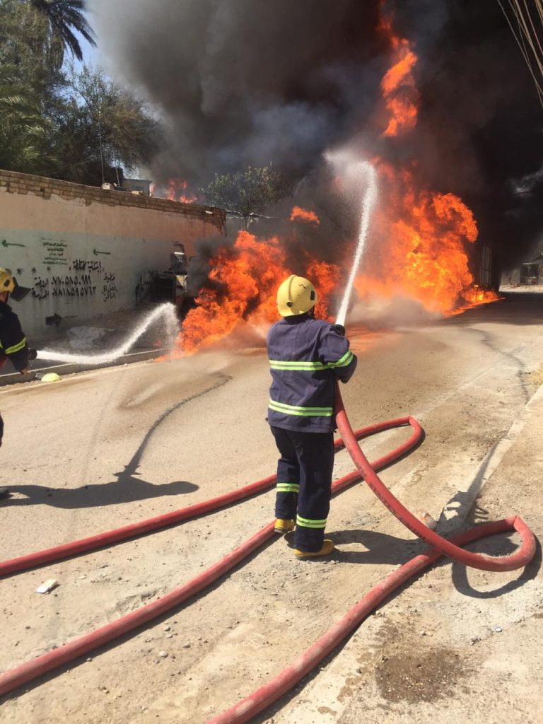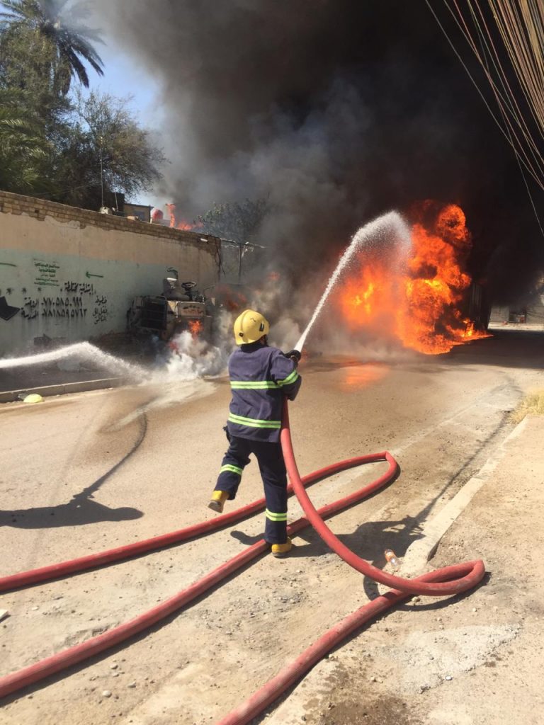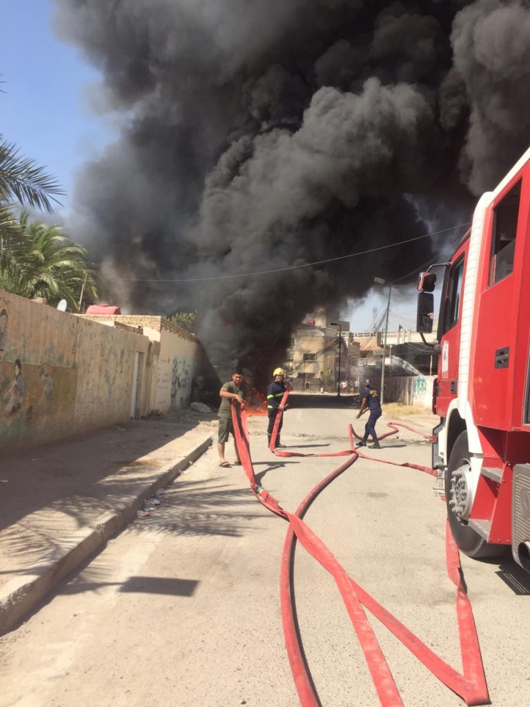 “خمسة فرق اطفاء تابعة الى مديرية الدفاع المدني تمكنت من السيطرة واخماد حادث حريق كبير اندلع داخل ثلاث مولدات كهربائية مع خزاناتها تحوي كميات كبيرة من وقود الكاز في منطقة الضباط بالاعظمية شمالي بغداد”.
