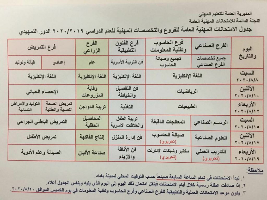 الاخبار العاجلةمحلياتالتربية تنشر جدول الامتحانات للطلبة الخارجيين – الدور التمهيدي – للتعليم المهني لجميع الفروع قبل 5 سنوات 1 مشاهدة شارك قد يهمك أيضا سياسة البطريركية الكلدانية توضح بشأن ما تداولته بعض المواقع والصفحات من تصريحات لويس ساكو قبل 4 ساعات 16 مشاهدات عربي ودولي الداخلية السورية: اعتقال زعيم تنظيم داعش بدمشق في عملية أمنية بالتعاون مع التحالف الدولي قبل 5 ساعات 12 مشاهدات سياسة السيد الصدر: لا مكان للتطبيع ولا لشرعنته في العراق قبل 5 ساعات 10 مشاهدات عربي ودولي الحرس الثوري الإيراني يوقف سفينة محملة بـ4 ملايين لتر من الوقود المهرب في مياه الخليج قبل 5 ساعات 11 مشاهدات عربي ودولي الجيش الأردني يشن غارات استهدفت شبكات تهريب ومزارع مخدرات بريف السويداء قبل 6 ساعات 10 مشاهدات
