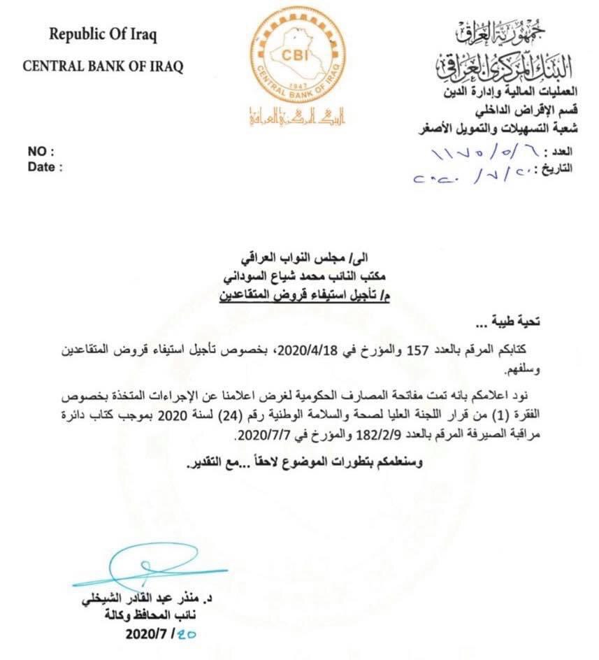 الاخبار العاجلةالبنك المركزي يعلن مفاتحة المصارف لتأجيل استيفاء قروض المتقاعدين قبل 5 سنوات 14 مشاهدات شارك قد يهمك أيضا أمن عمليات بغداد تدعو للالتزام بالتعليمات والإجراءات المعتمدة باحتفالات رأس السنة قبل 46 دقيقة 8 مشاهدات أقتصاد السوداني: نسبة العجز المالي أثرت على مختلف القطاعات قبل 50 دقيقة 6 مشاهدات سياسة التحالف المسيحي يصدر بيانًا بعد خطاب لويس ساكو عن "التطبيع" قبل ساعة واحدة 11 مشاهدات محليات دائرة الطب العدلي تسلّم رفات 70 شهيداً من ضحايا مجزرة بادوش قبل ساعتين 9 مشاهدات محليات الصحة توجه بالتحقيق في أسباب وفاة مريضة بأحدى المستشفيات الاهلية في بغداد قبل ساعتين 9 مشاهدات