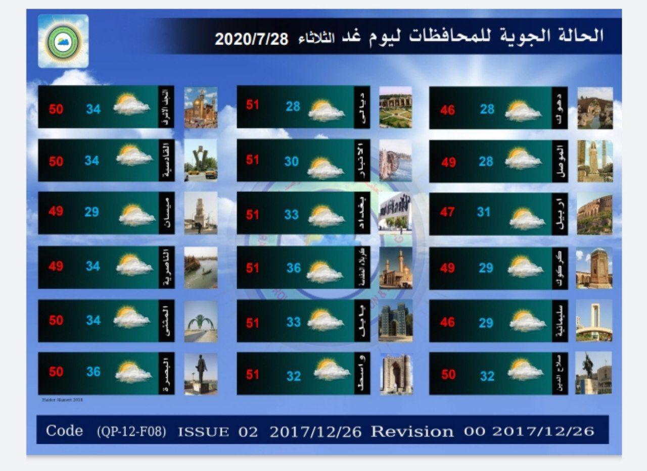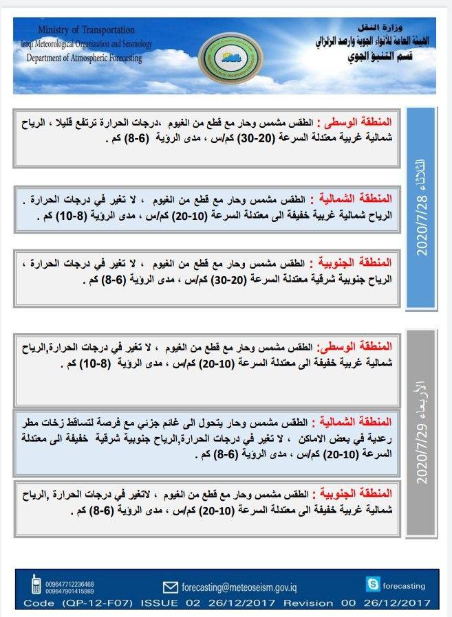 الاخبار العاجلةمحلياتالحالة الجوية ودرجات الحرارة في العراق لليوم الاثنين والايام المقبلة قبل 5 سنوات 2 مشاهدات شارك الطقس قد يهمك أيضا محليات الانواء الجوية: العراق يتأثر بمنخفض شبه قطبي يتسبب بأمطار وتدني درجات الحرارة قبل 16 دقيقة 6 مشاهدات محليات الكهرباء: الإنتاج الحالي يصل لـ17 ألف ميغاواط قبل 33 دقيقة 5 مشاهدات محليات الموارد: خطة لإنشاء 50 سداً لحصاد المياه غالبيتها في نينوى والأنبار قبل ساعة واحدة 8 مشاهدات عربي ودولي الصحة اللبنانية: شهيد في غارة إسرائيلية على بلدة مجدل سلم جنوبي البلاد قبل ساعة واحدة 10 مشاهدات الملف 13 جنود روسيا العراقيين.. ضحايا مدانين قبل ساعتين 7 مشاهدات
