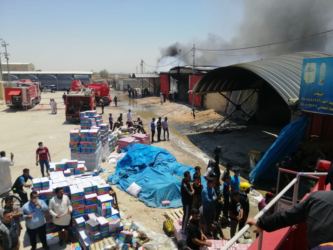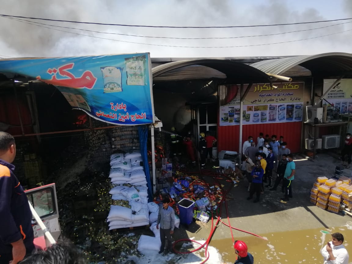 مديرية الدفاع المدني تعلن اخماد حريق مخازن المواد الغذائية في محافظة النجف