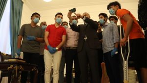 من جانبه عبّر وفد جرحى تظاهرات الناصرية عن بالغ شكرهم وامتنانهم لرئيس مجلس الوزراء على حسن الاستقبال، وحرصه على متابعة أوضاع الجرحى في ذي قار وبقية المحاقظات، واهتمامه الكبير بأبناء الناصرية، وأكدوا دعمهم لجهود رئيس الوزراء في تحقيق المطالب المشروعة للمتظاهرين من أجل مستقبل العراق.